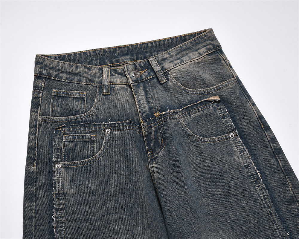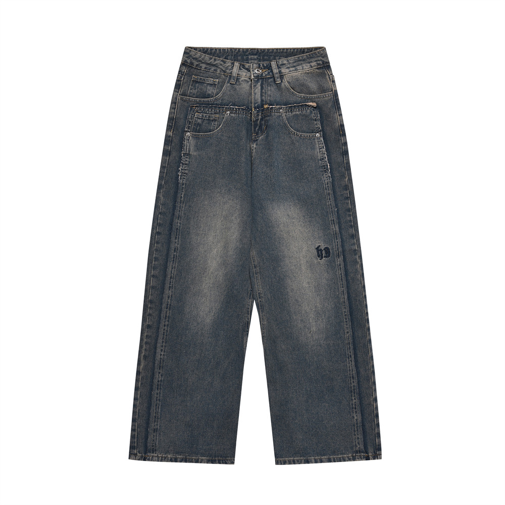 Washed Denim Straight Men's Wide-leg Pants
