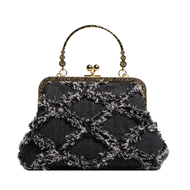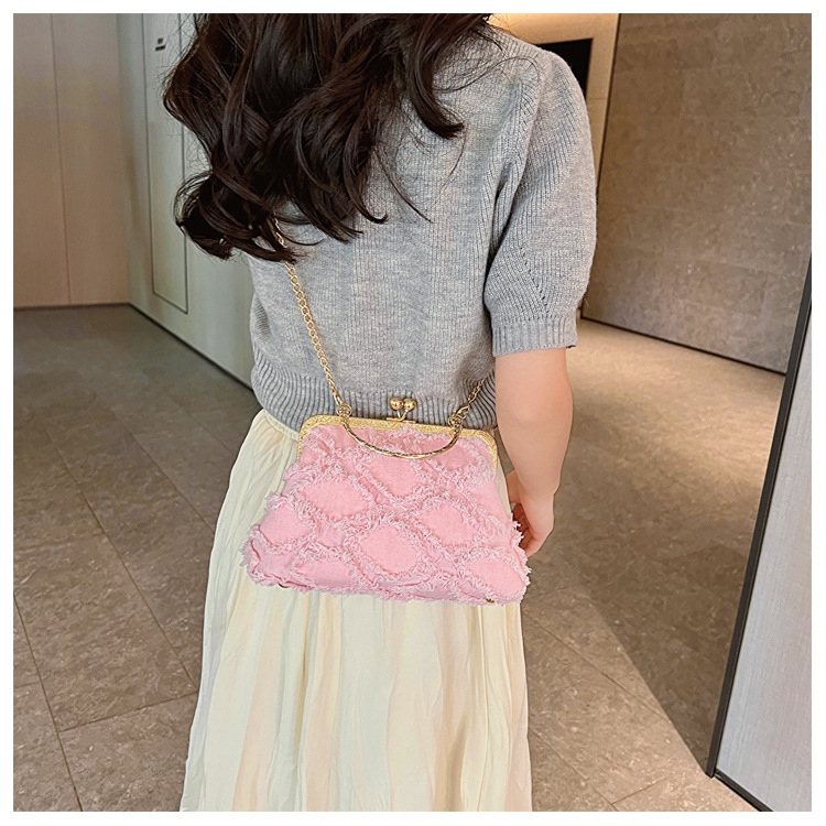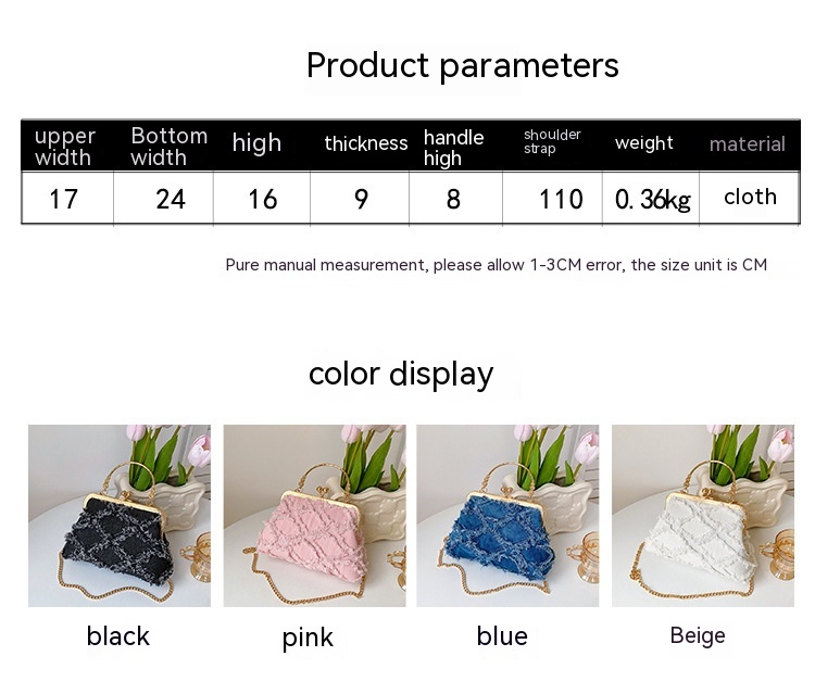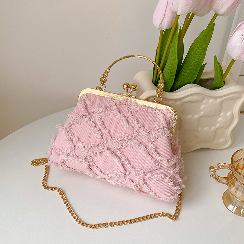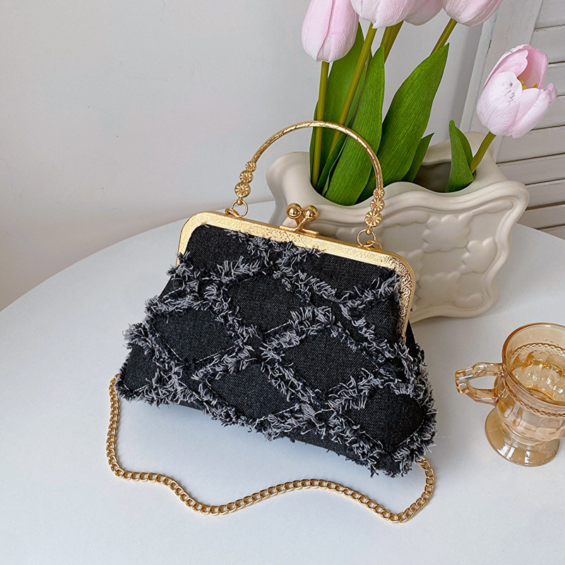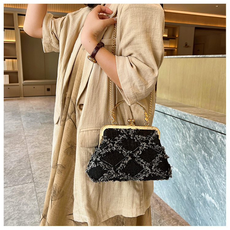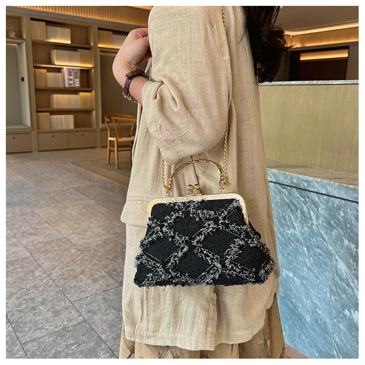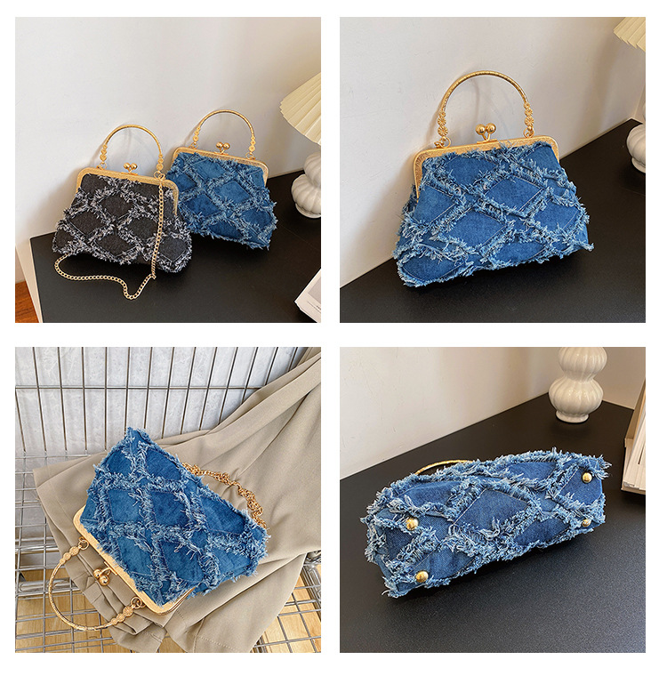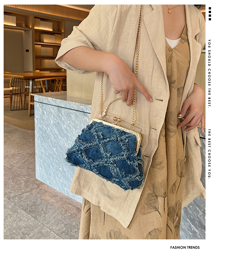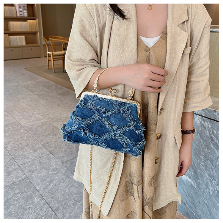 Washed Denim Style Stitching Rhombus Clip Bag Fashion Chain Shoulder Messenger Bag