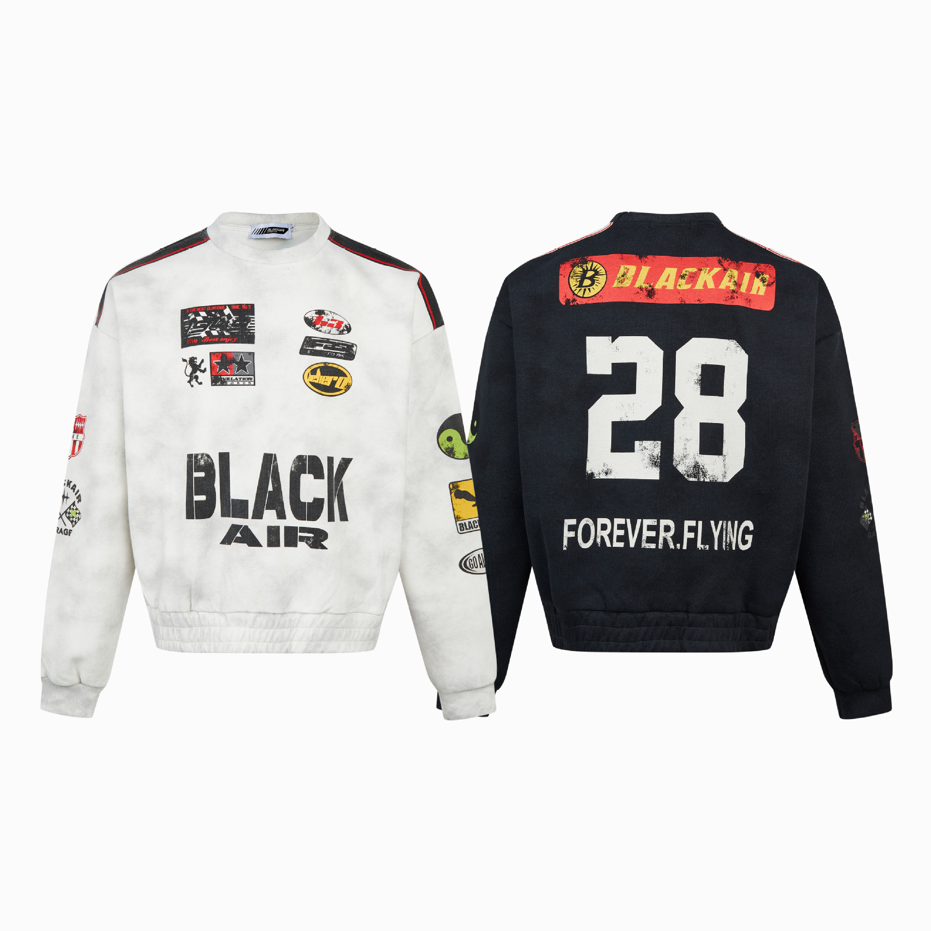 Washed Distressed Racing Special-interest Design Printed Heavy Top