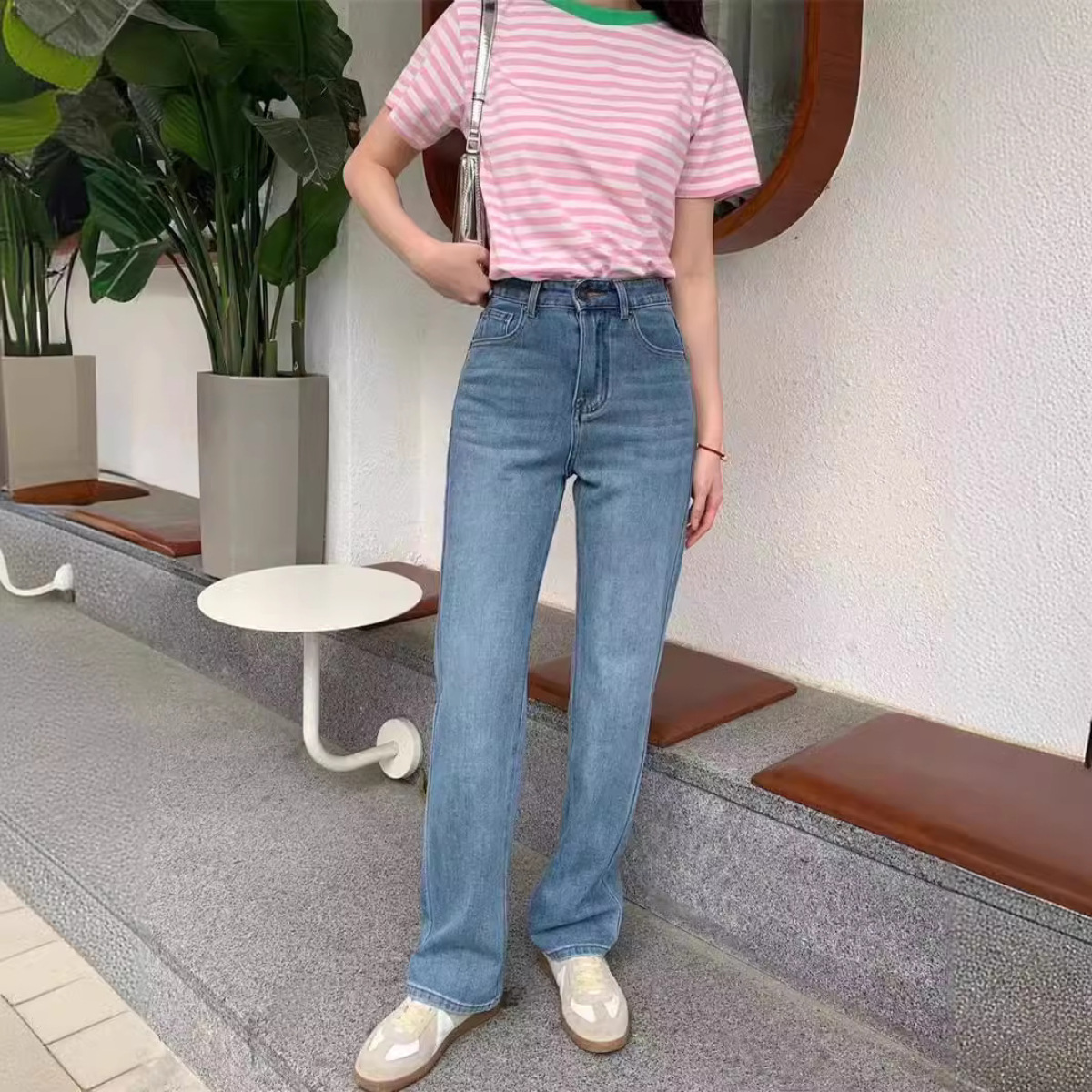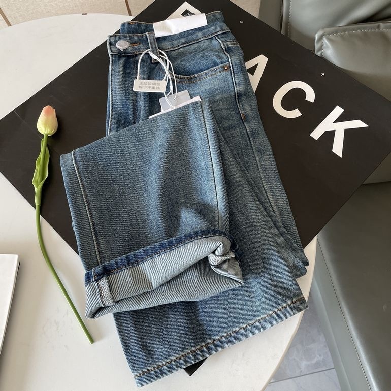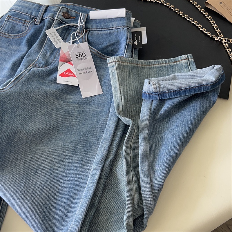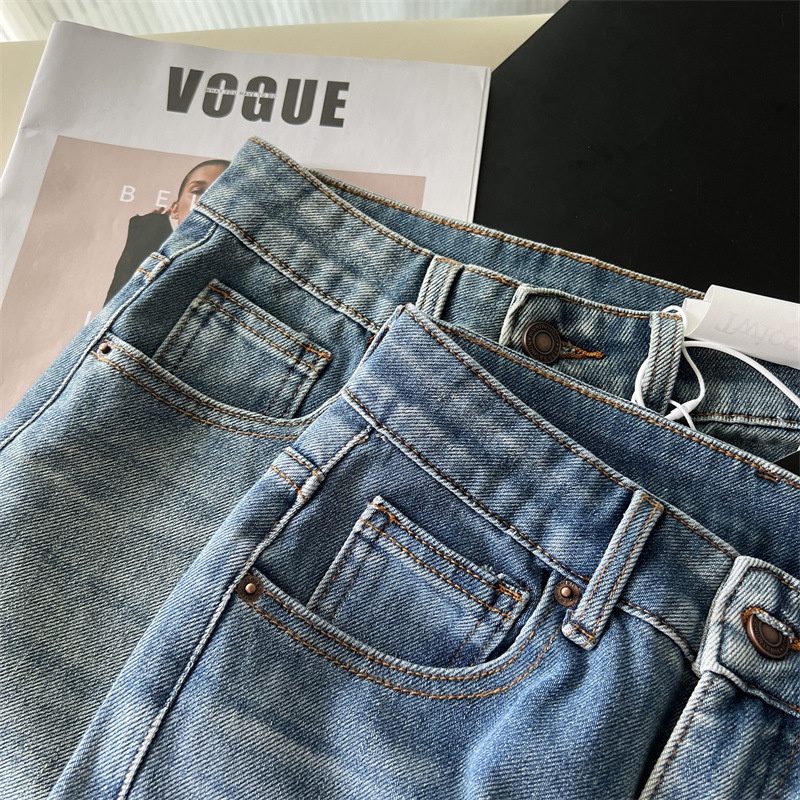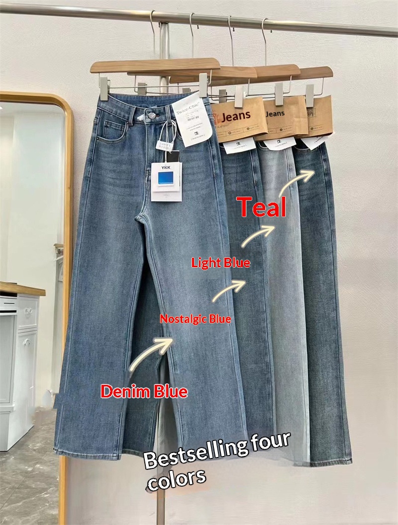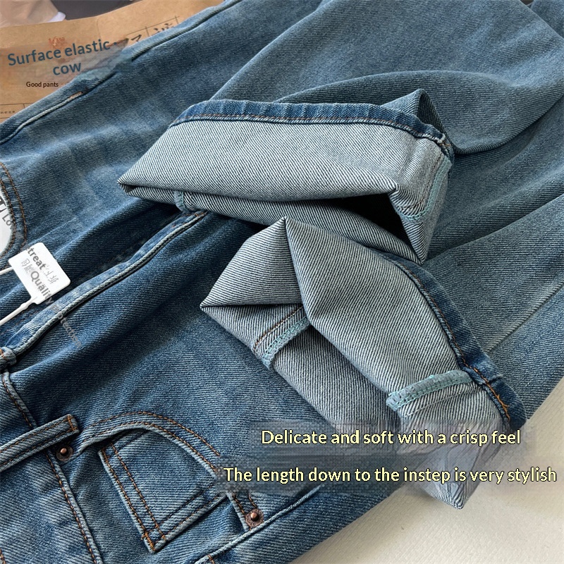 Washed Narrow-fit Straight-leg Floor-length Wide-leg Jeans