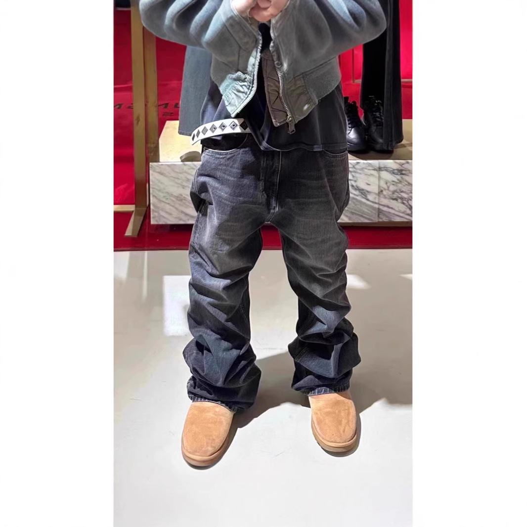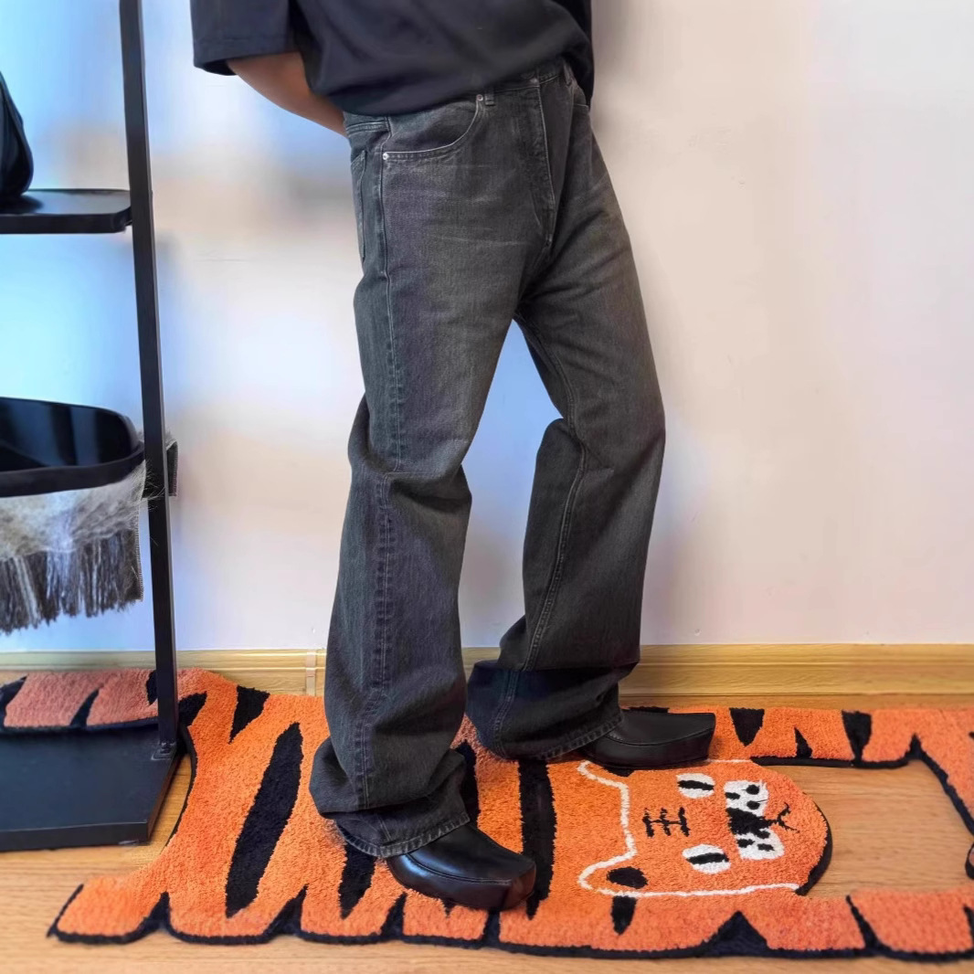 Washed Old Black And Gray Slightly Flared Jeans Men