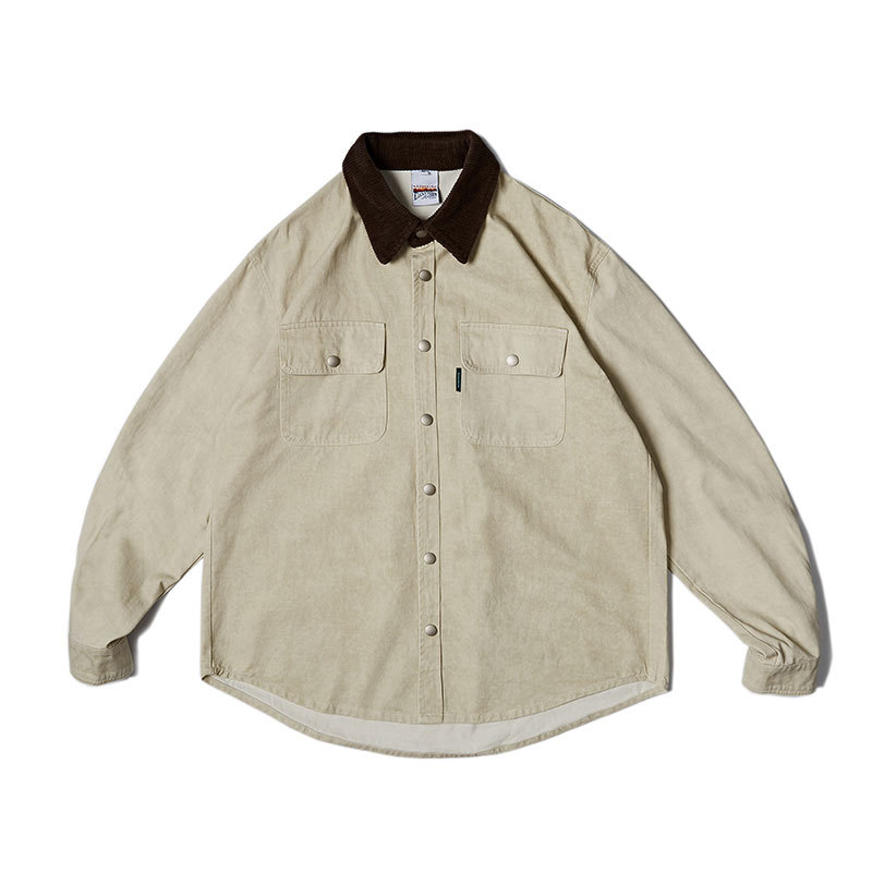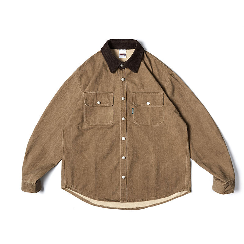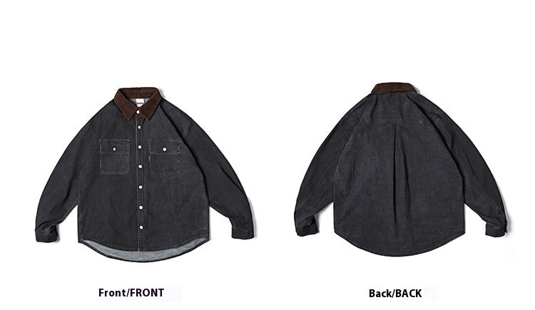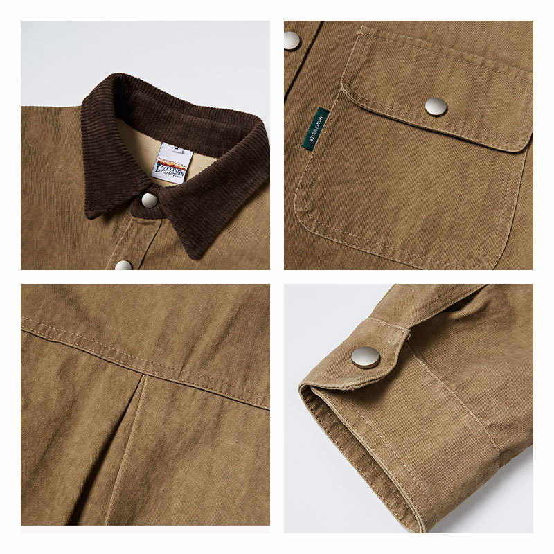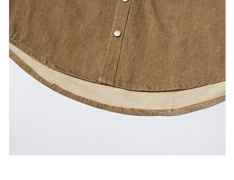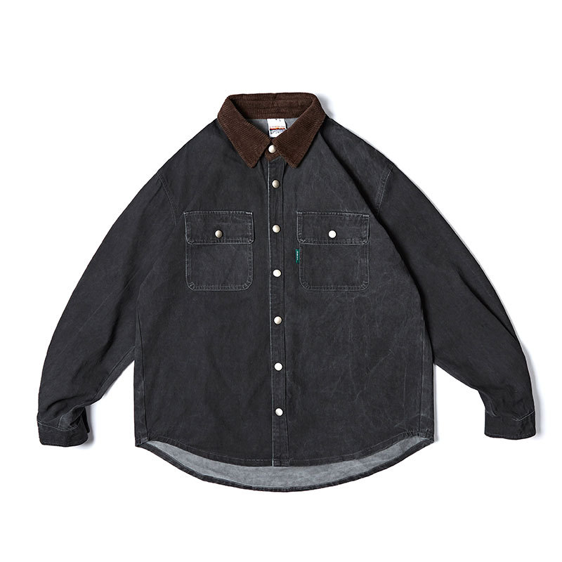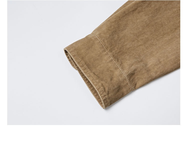 Washed Old Contrast Color Lapel Long Sleeve Shirt Men