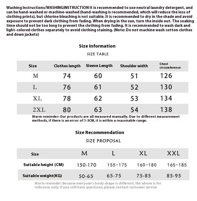 Note: 1. Asian sizes are 1 to 2 sizes smaller than European and American people. Choose the larger size if your size between two sizes. Please allow 2-3cm differences due to manual measurement. 2. Please check the size chart carefully before you buy the item, if you don't know how to choose size, please contact our customer service. 3.As you know, the different computers display colors differently, the color of the actual item may vary slightly from the following images.
