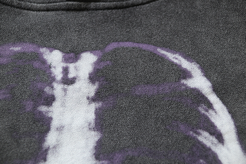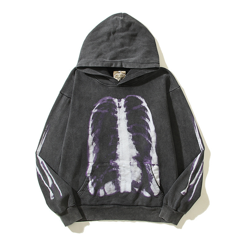 Washed-out Vintage Distressed Skull Bone Hooded Sweater
