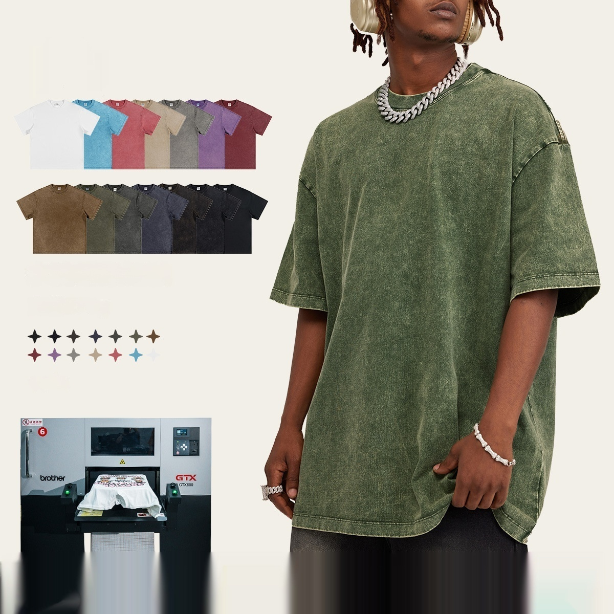 Washed-out Vintage Pure Cotton Loose Short Sleeve Male