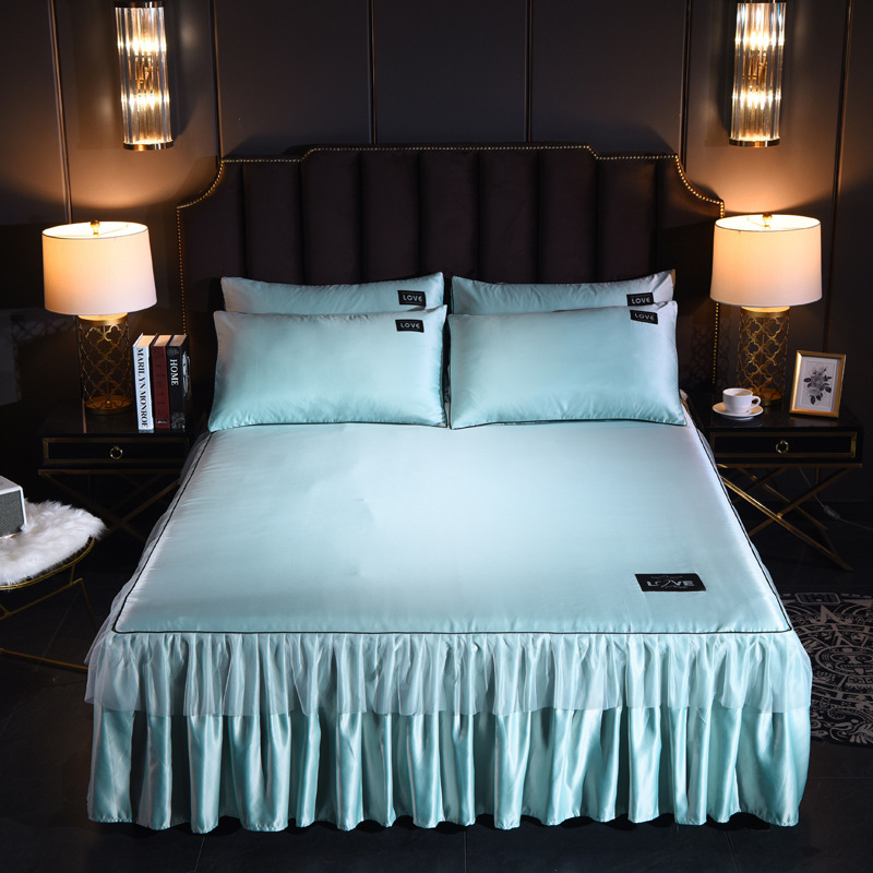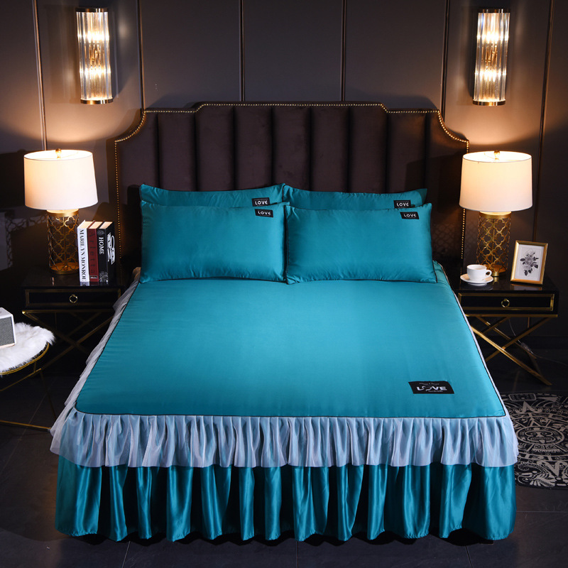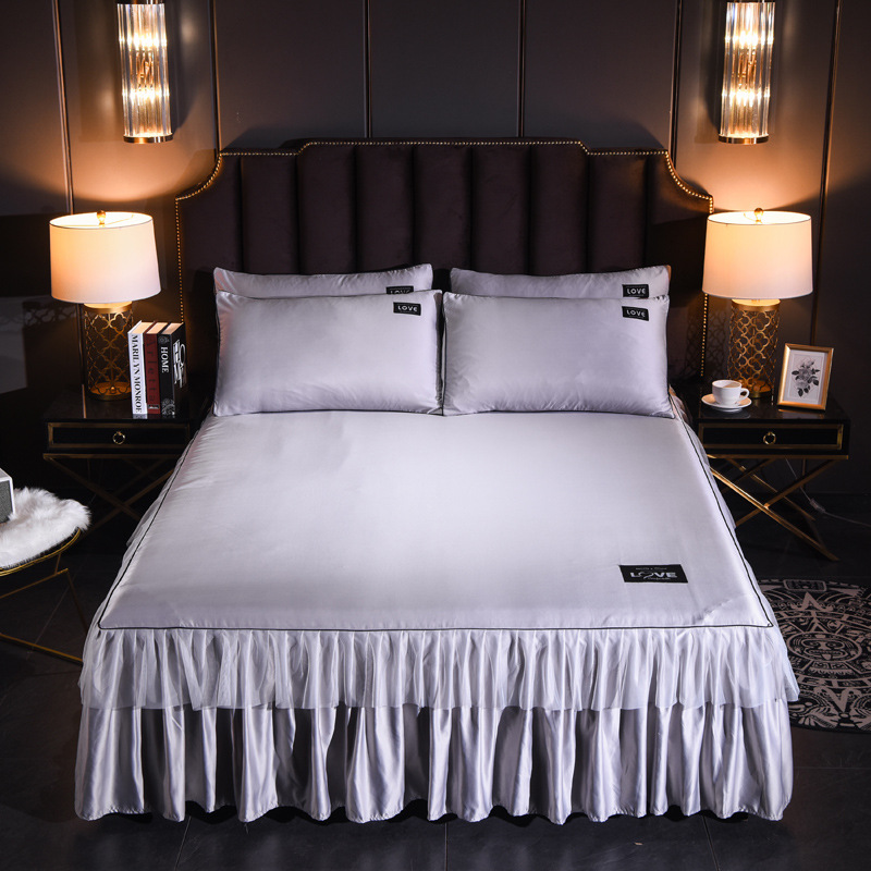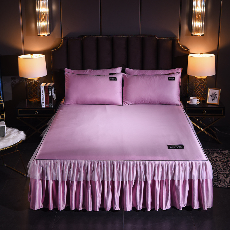 The three-piece set includes: 1 bed skirt and 2 pillowcases.