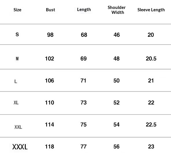 Sizes: S, M, L, XL, XXL, XXXL