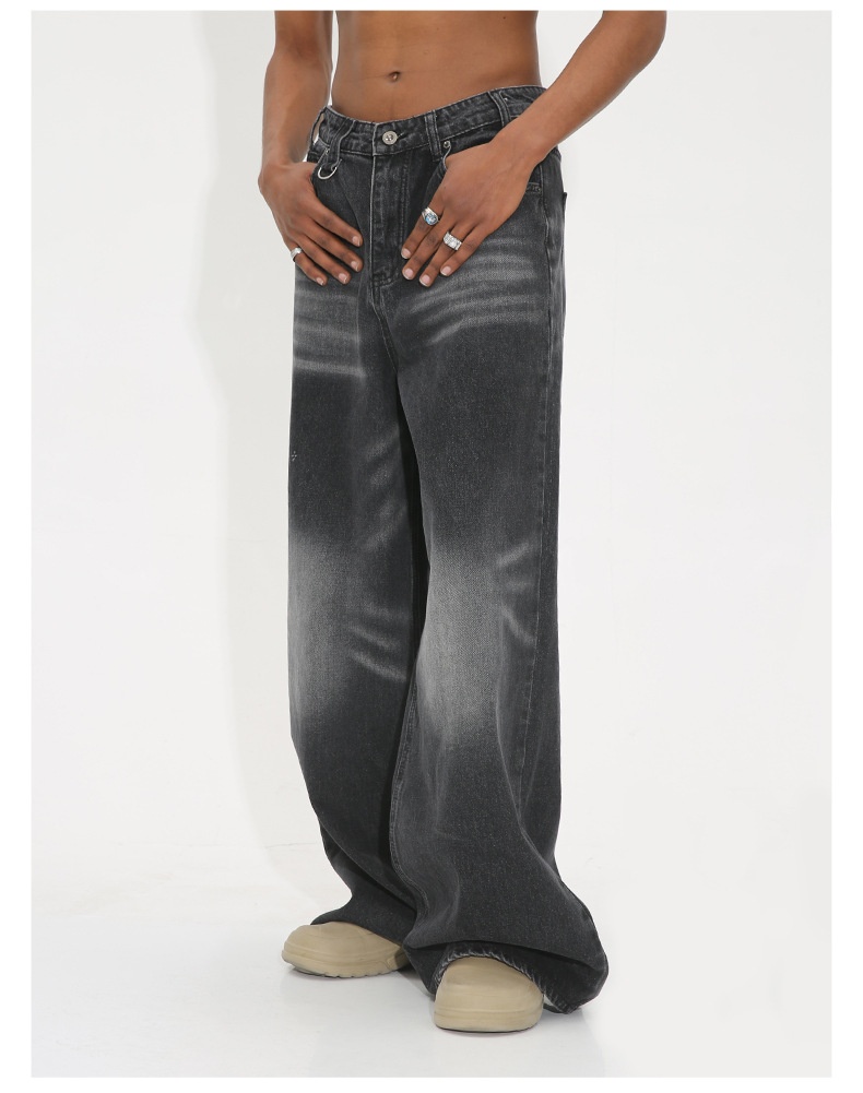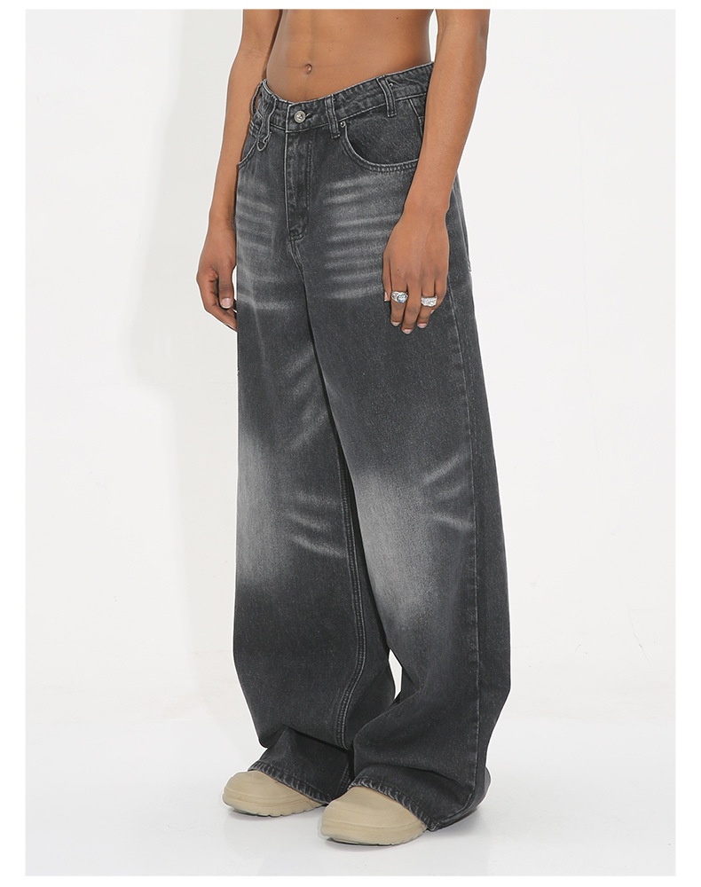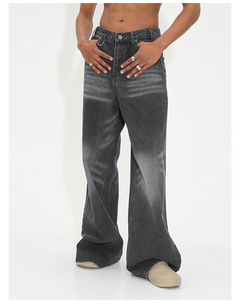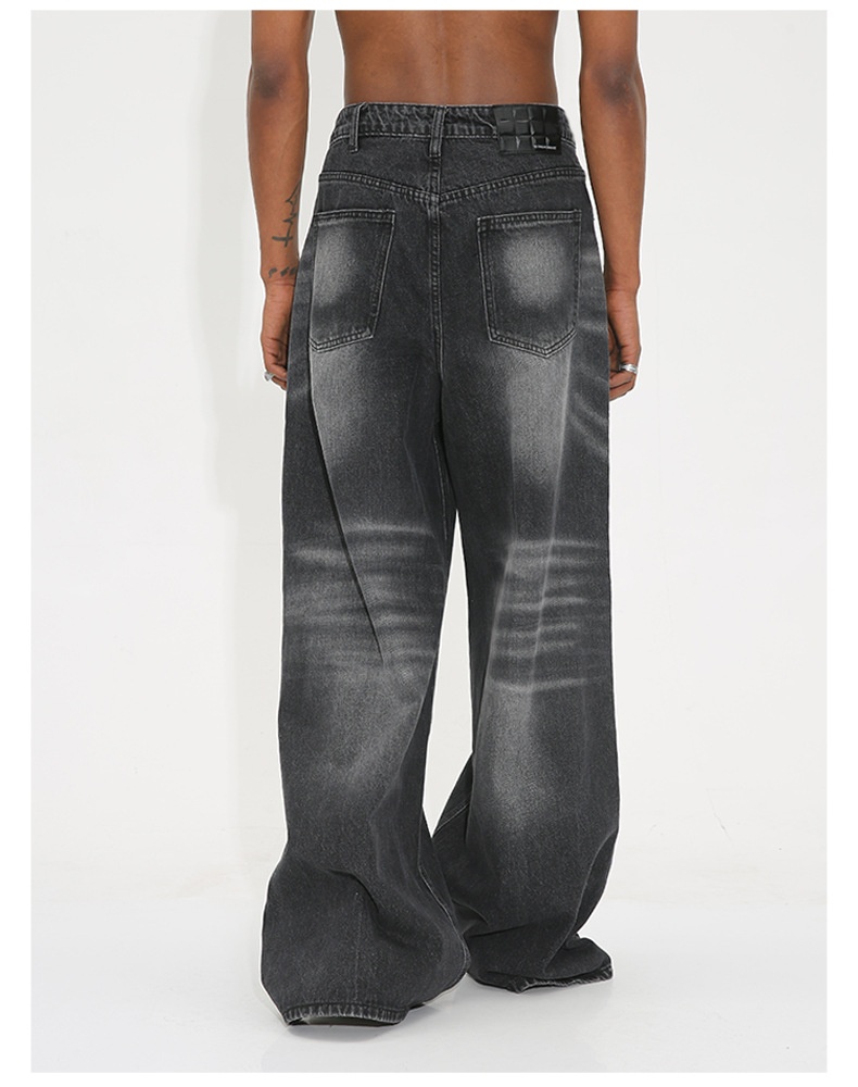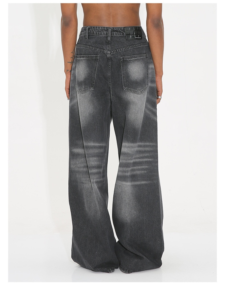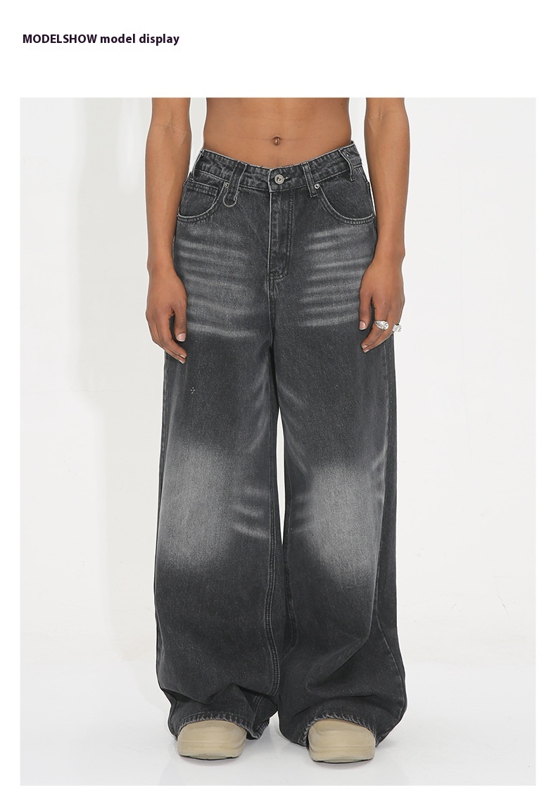 Washed Vintage Straight Wide-leg Pants Mopping Floor Denim