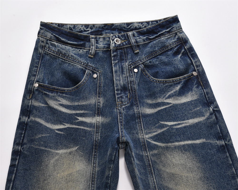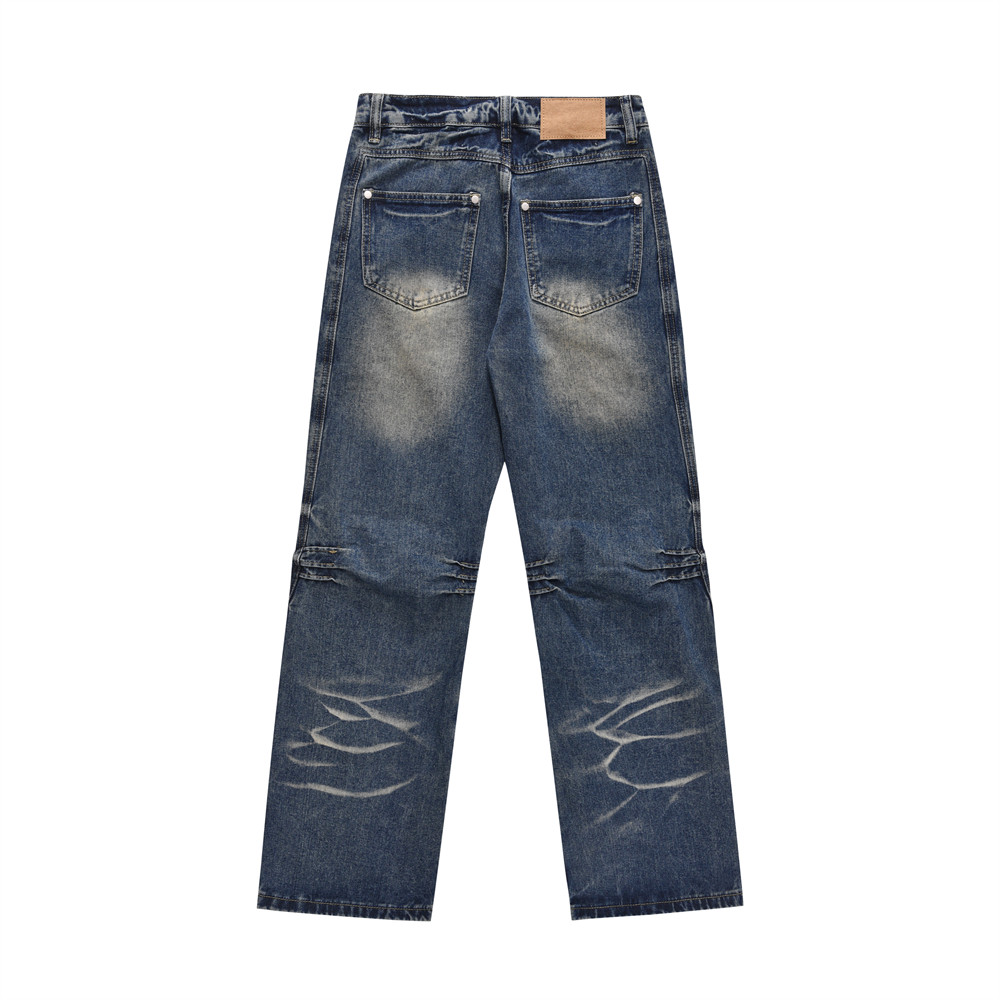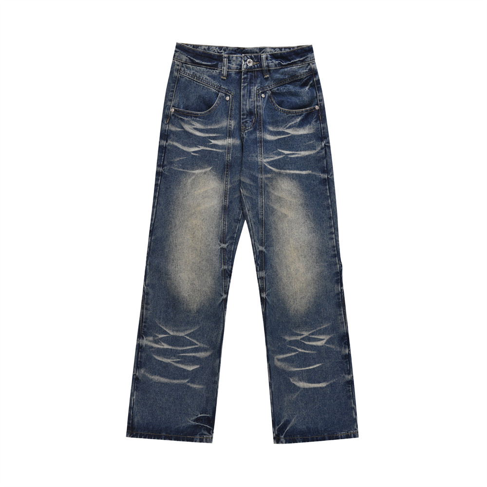 Washed Wear-white Denim Straight-leg Pants Male