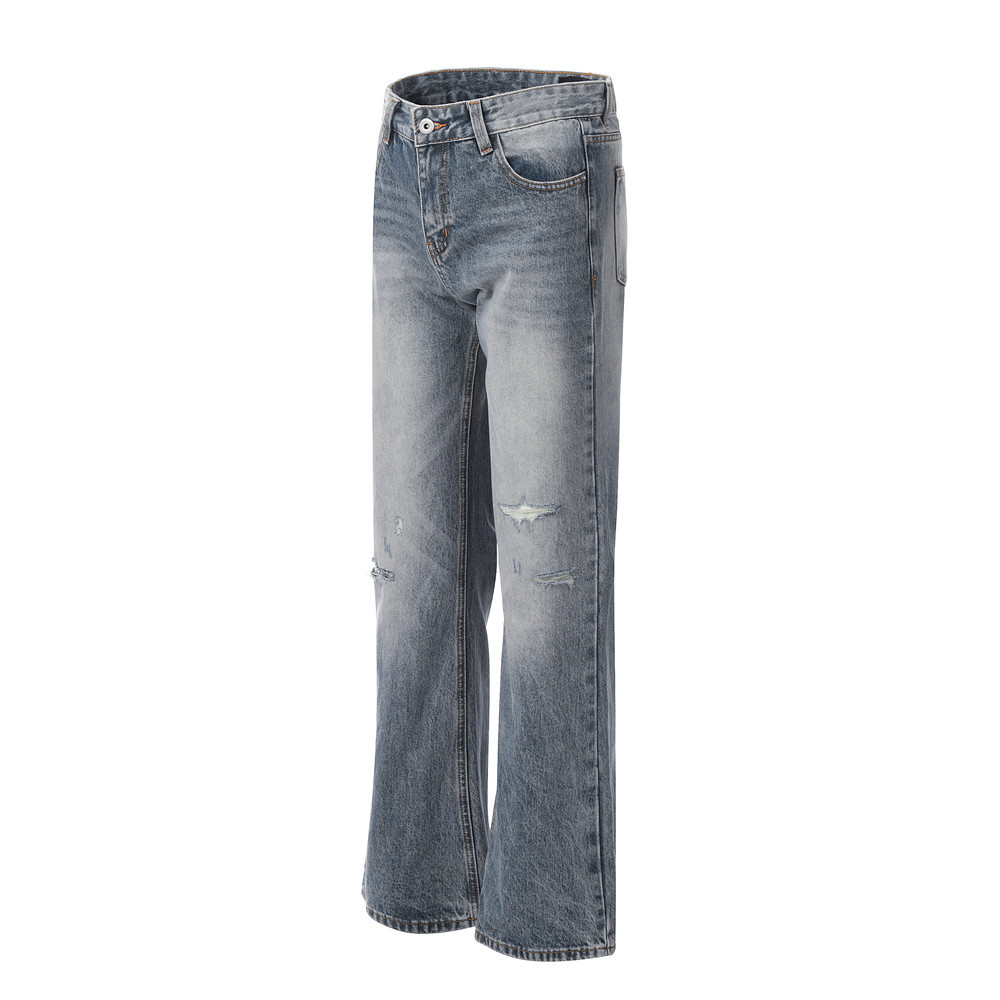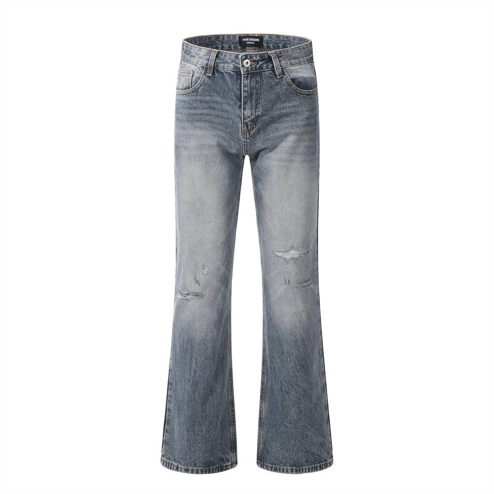 Washing Hole Denim Bootcut Trousers Trendy Punk