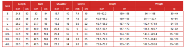 Size: S, M, L, XL, XXL, XXXL, XXXXL