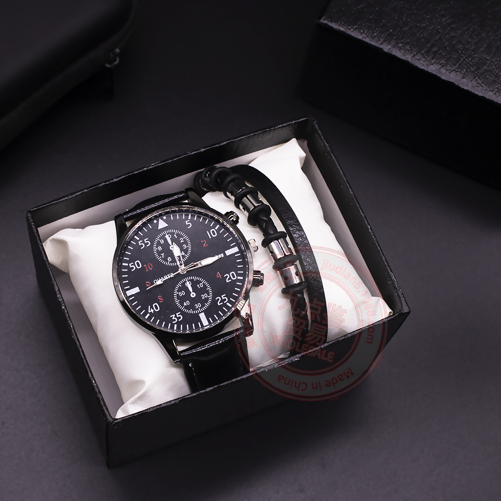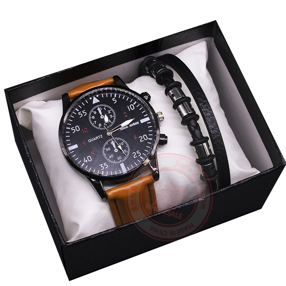 Color: black belt watch + three-post bracelet + box, brown belt watch + three-post bracelet + box, black belt alone watch, brown belt alone watch, box