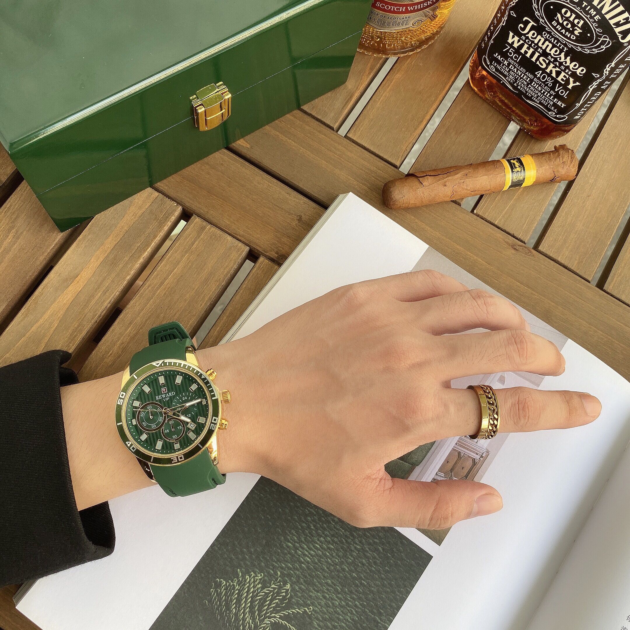 Watch Men's Silicone Belt Mori Malachite Green Phnom Penh Three Eyes Luminous Calendar