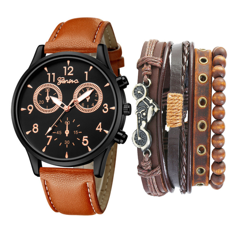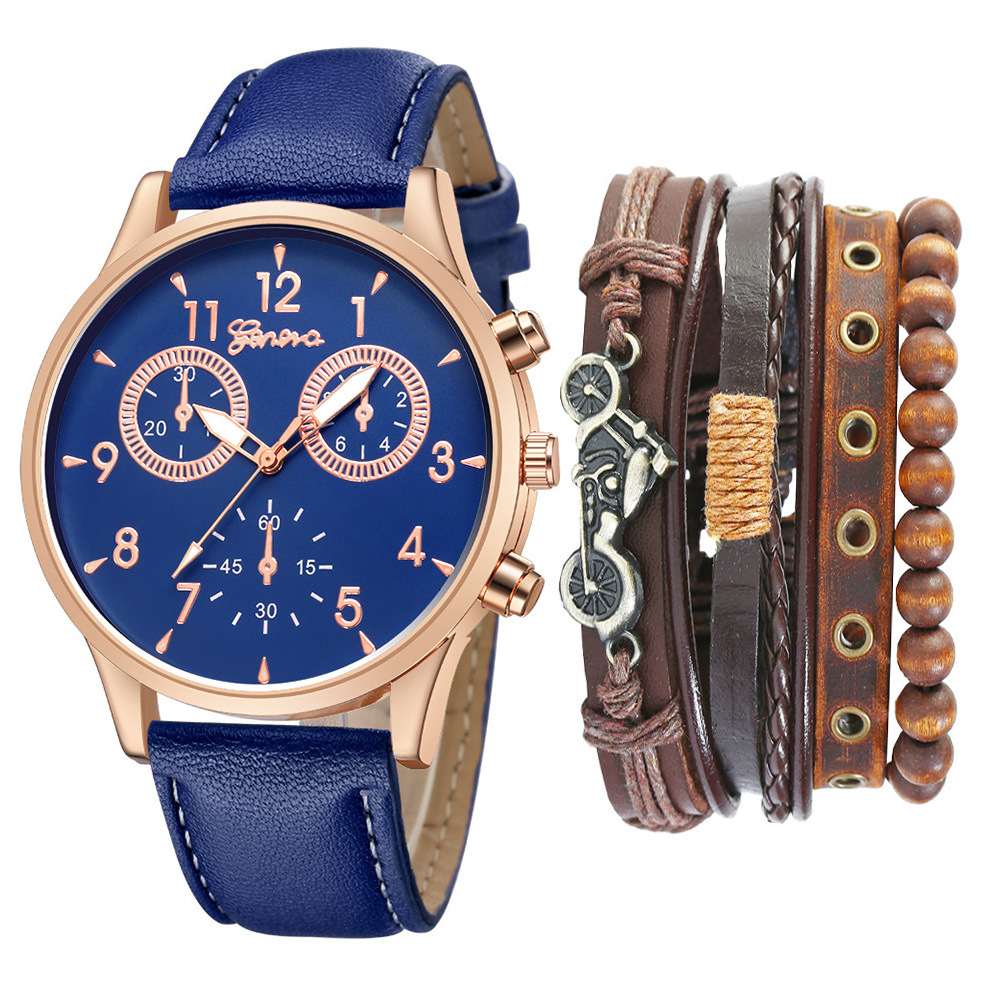 Watch Set Two-eye Belt Quartz Watch Bicycle Punk Bracelet