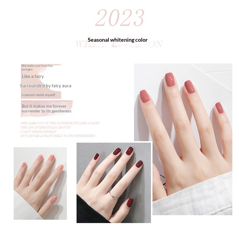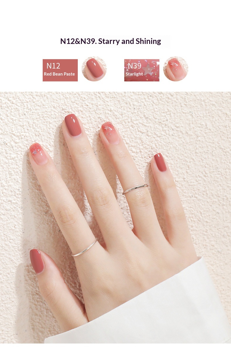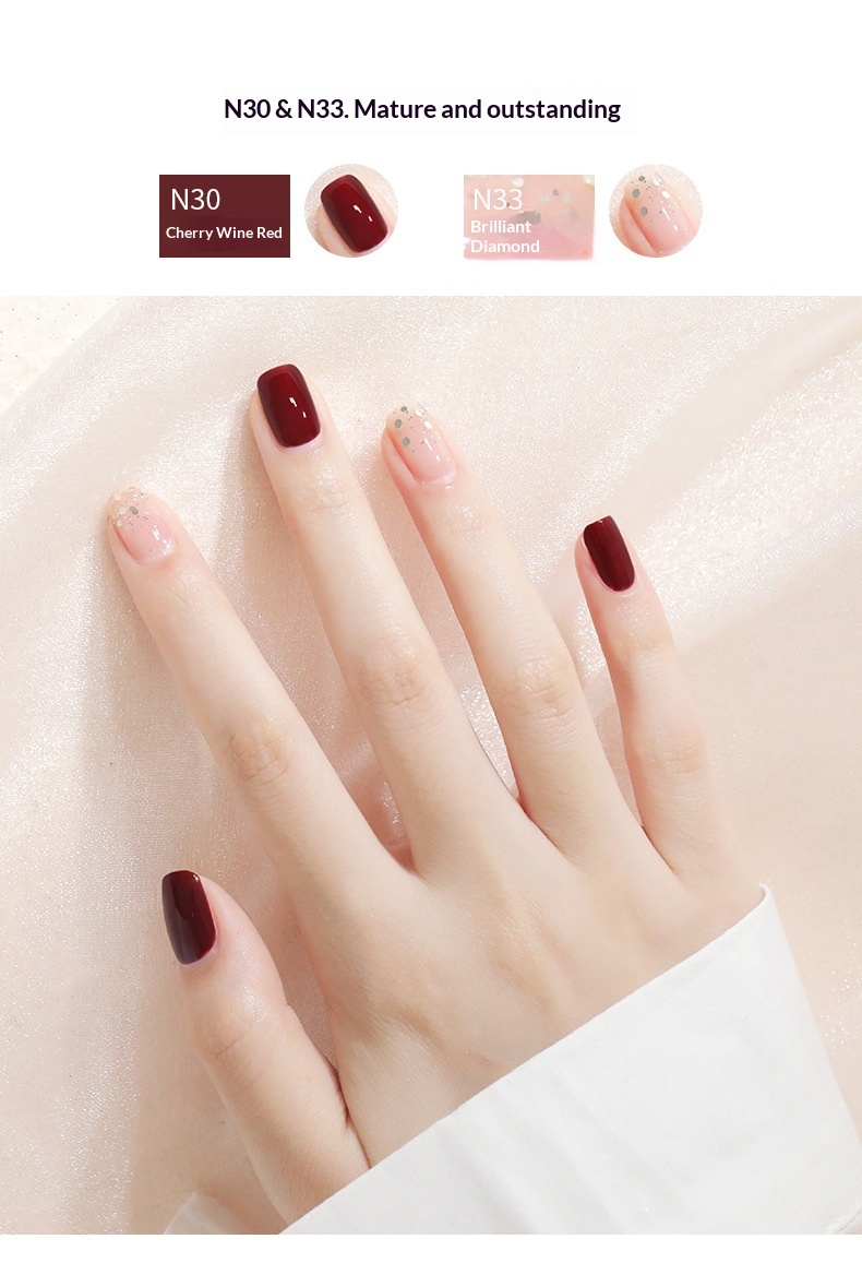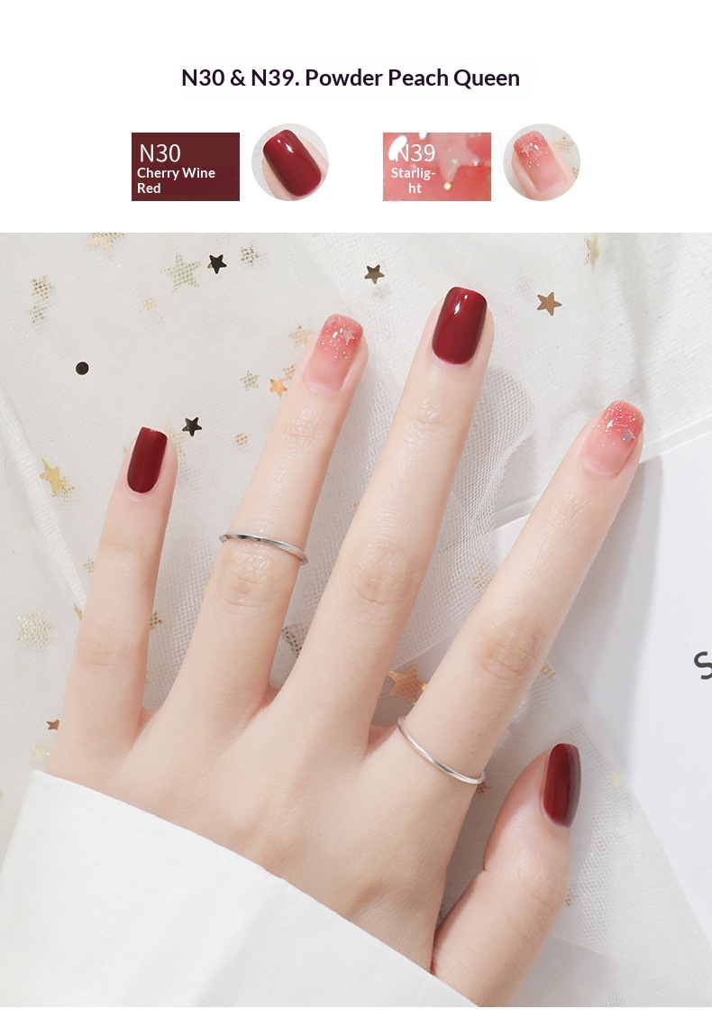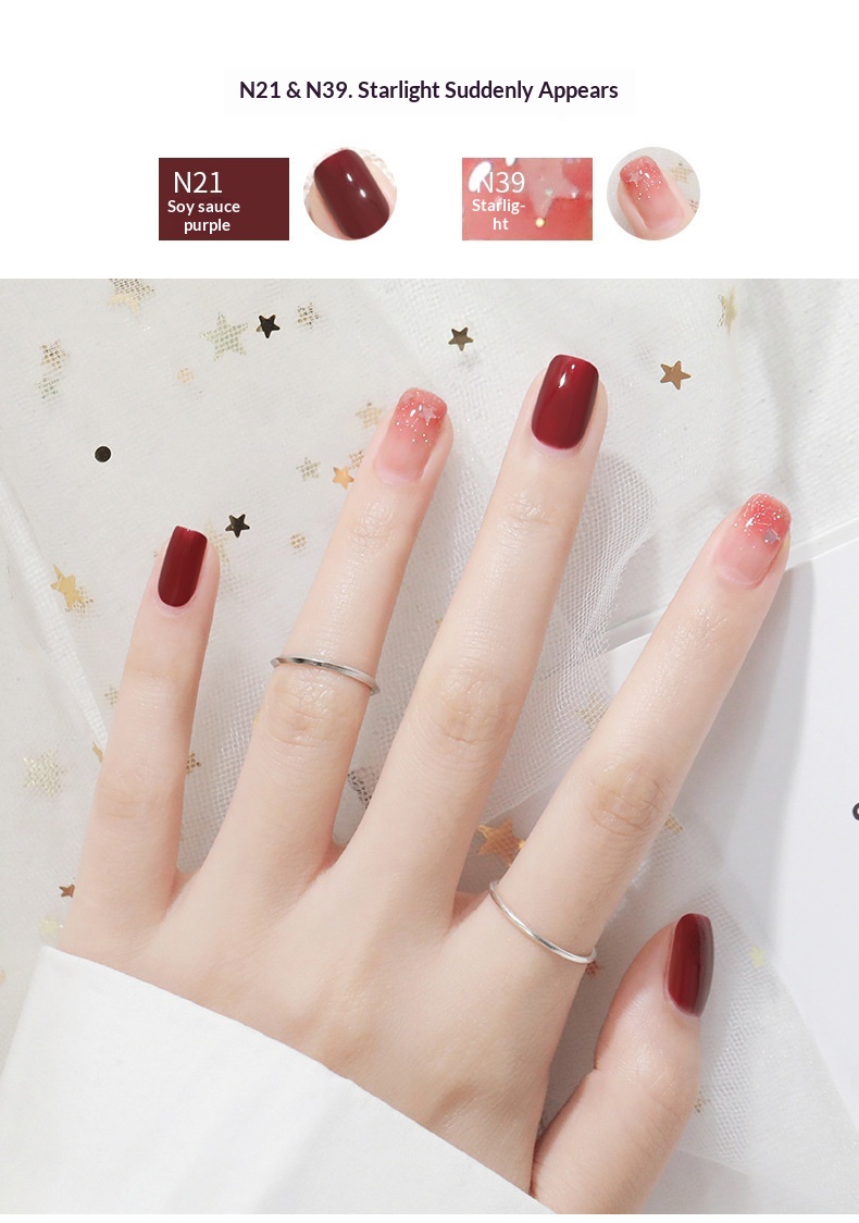 Color: N1 Clear Gloss, N2 Nude Pink with Fine Glitter, N3 Lavender, N4 Classic Nude, N5 Matcha, N6 Chinese Red, N7 Primrose, N8 Lilac, N9 Almond, N10 Khaki, N11 Wine Red with Fine Glitter, N12 Bean Paste Red, N13 Grapefruit, N14 Haze Blue, N15 Smoke Gray, N16 Bright Red, N17 Lotus Root Color, N18 Light Coffee, N19 Orange-Red, N20 Rose Red, N21 Plum Purple, N22 Hawthorn Smoothie, N23 Western Date Red, N24 Cherry Blossom Pink, N25 Taro Purple, N26 Red-Brown, N27 Navy Blue, N28 Pearl White, N29 Charcoal Black, N30 Cherry Red, N31 Gilded Nude Pink, N32 Rainbow Candy, N33 Sparkling Diamond, N34 Clear Crystal, N35 Cherry Blossom Fairy, N36 Starry Night in Black, N37 Shimmering Fine Silver, N38 Grape Smoothie, N39 Starlight, N40 Blue-Grey