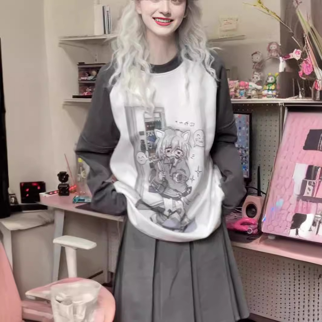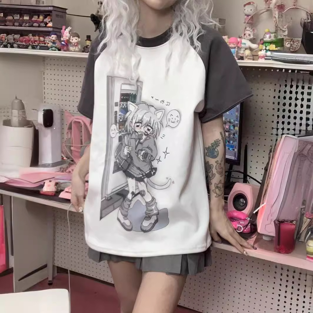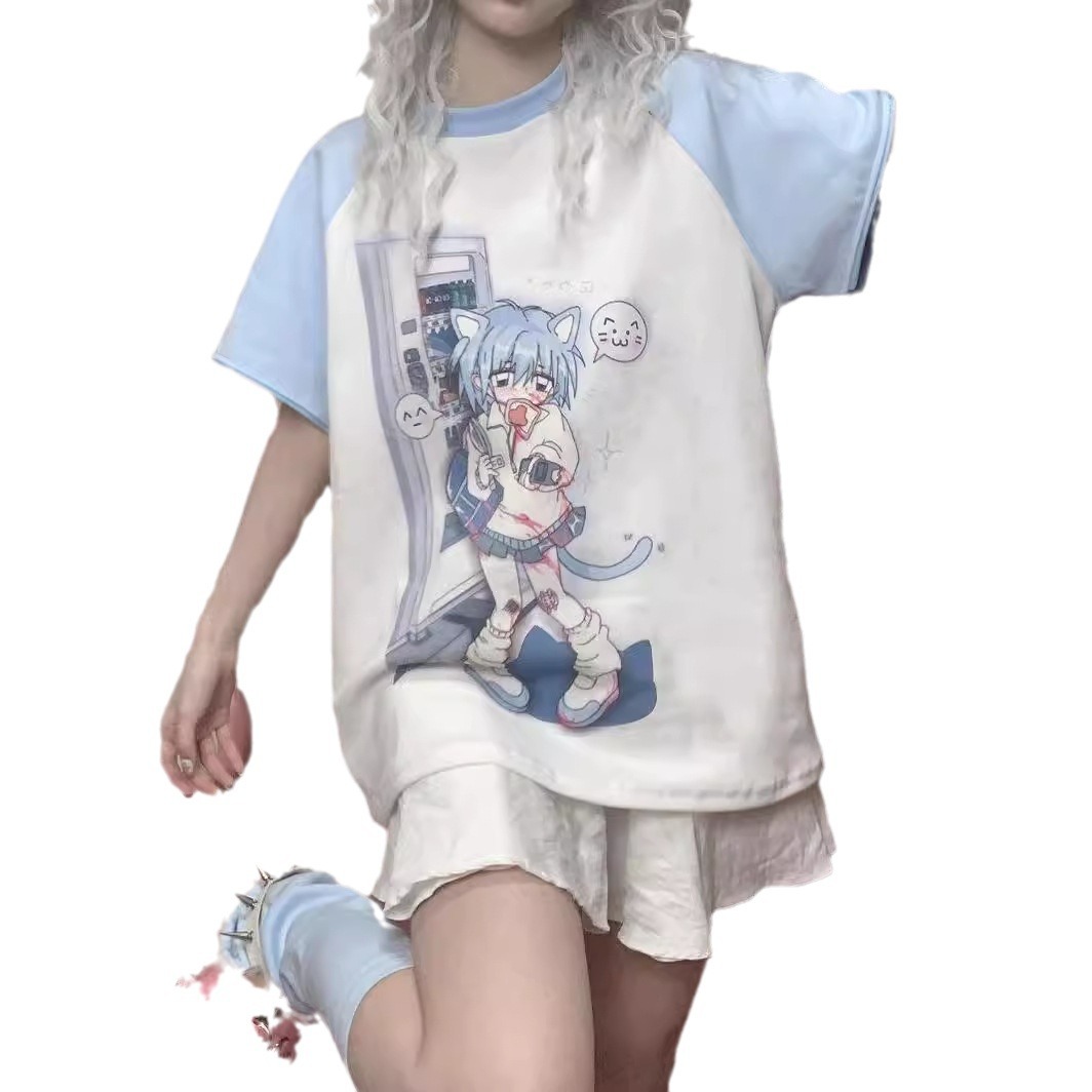 Water Color Raglan Girl Cute Sister Sleeve Detachable Short Sleeve T-shirt