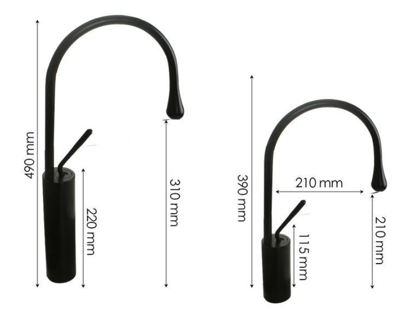 Specifications; brushed gold standard medium style, brushed gold standard high style, white standard medium style, white standard high style