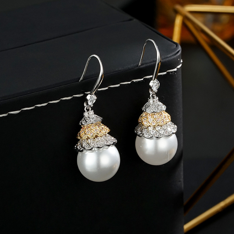 Water Droplet Three-layer Pine Tower Bead Ear Hook