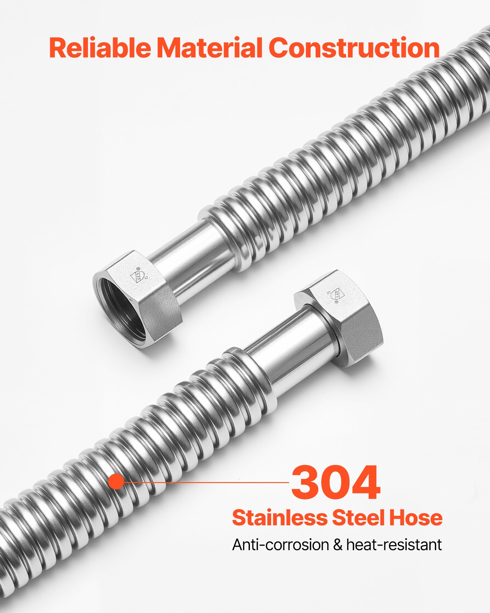 Durable SUS304 Stainless Steel: Made of premium 304 stainless steel, the water heater connector features a flexible corrugated design, resisting kinking and leakage, ensuring long-lasting durability and reliable water flow