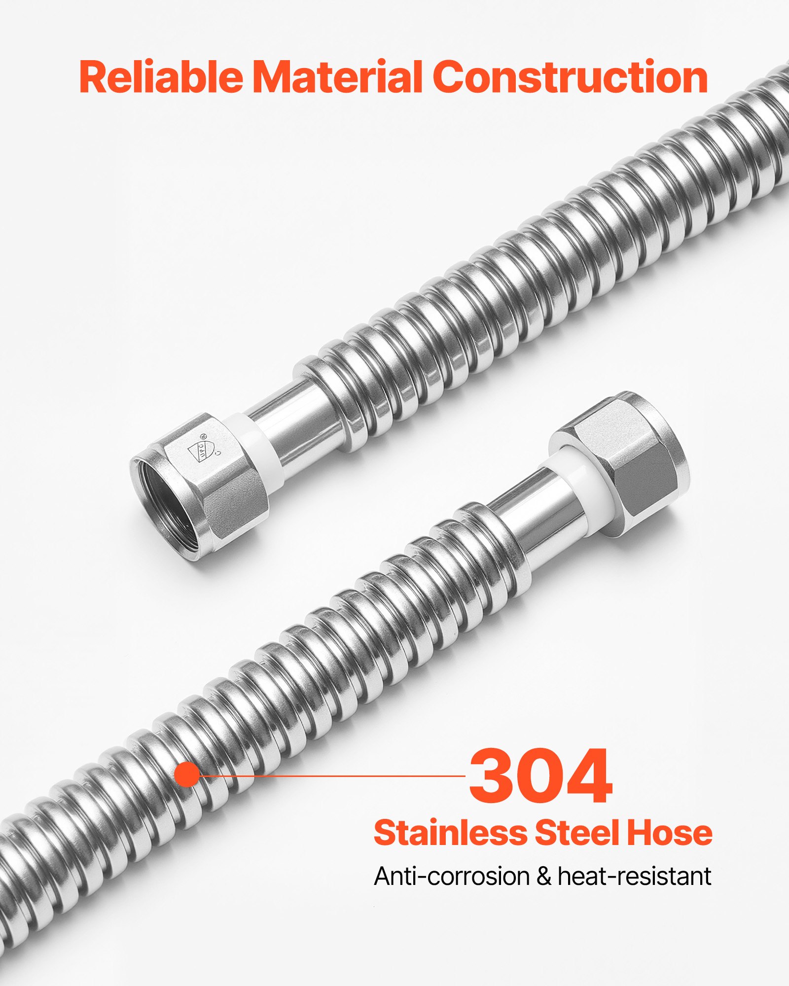 Durable SUS304 Stainless Steel: Made of premium 304 stainless steel, the water heater connector features a flexible corrugated design, resisting kinking and leakage, ensuring long-lasting durability and reliable water flow