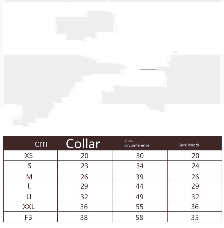 Size; XS, S, M, L, LL, XXL, FB
