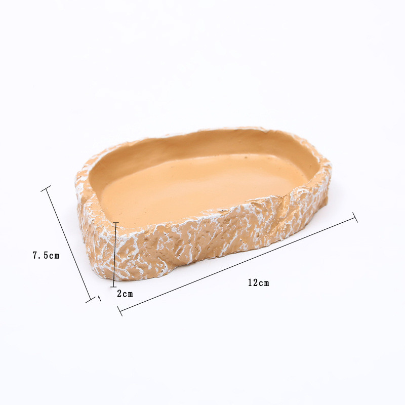 Information:Name: Reptile Food BasinMaterial: High-grade resinPacking: Styrofoam all inclusiveSize: 12*7.5*2cmWeight: 110 gramsColor: As shown