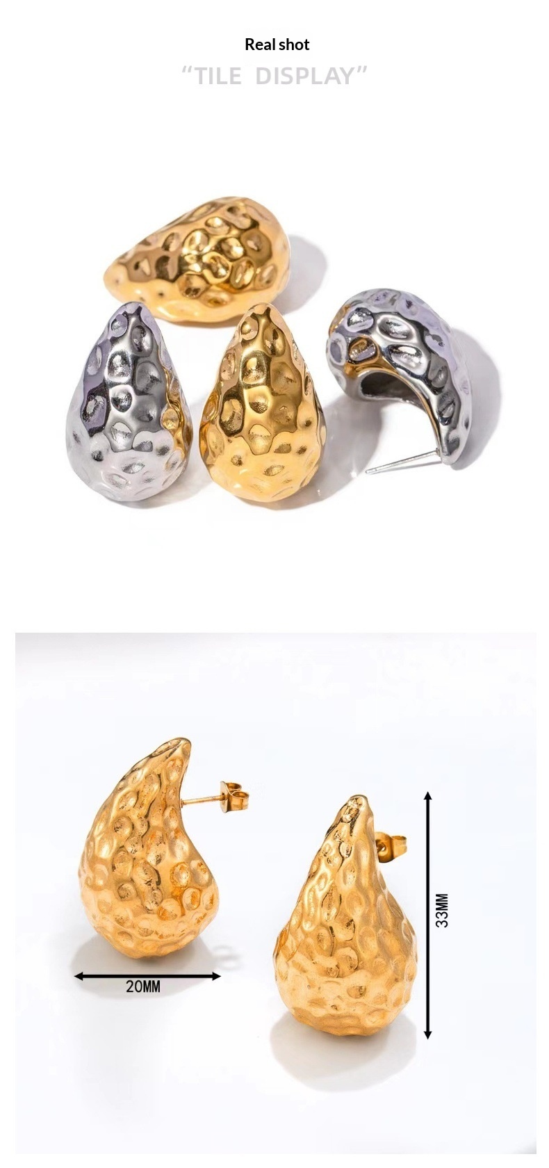 Color: MH-123 Hammered Waterdrop Gold, MH-123 Hammered Waterdrop Steel