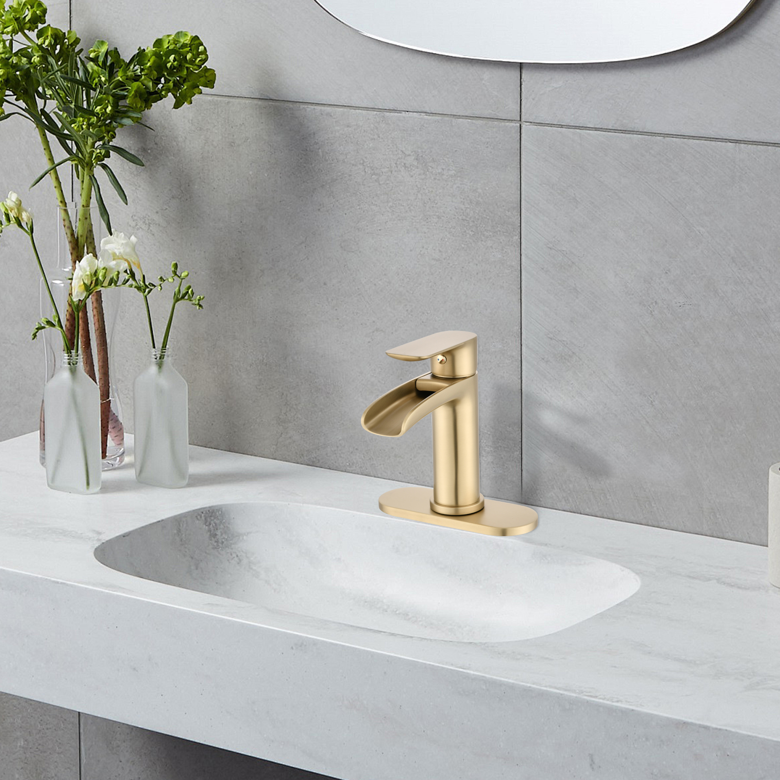 Product Name:Waterfall Bathroom Faucet Single Handle Bathroom Sink Faucets 1 or 3 Hole Solid Vanity Faucet with Deck Plate & Overflow Pop Up Drain Brushed Nickel