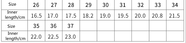 Size: size 26, size 27, size 28, size 29, size 30, size 31, size 32, size 33, size 34, size 35, size 36, size 37