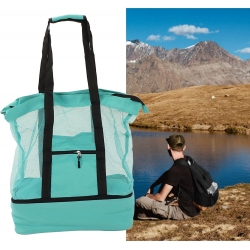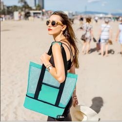 Multi functional design: The mesh beach handbag is also equipped with multiple convenient pockets and compartments, which can easily store and classify various items such as mobile phones, keys, water bottles, sunscreen, etc.