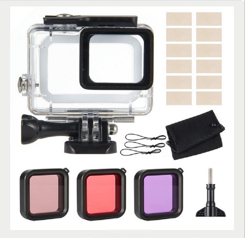 Option six. gopro5 6 7 waterproof shell plus red purple pink 3 color filters + one velvet bag + one anti-fog insert