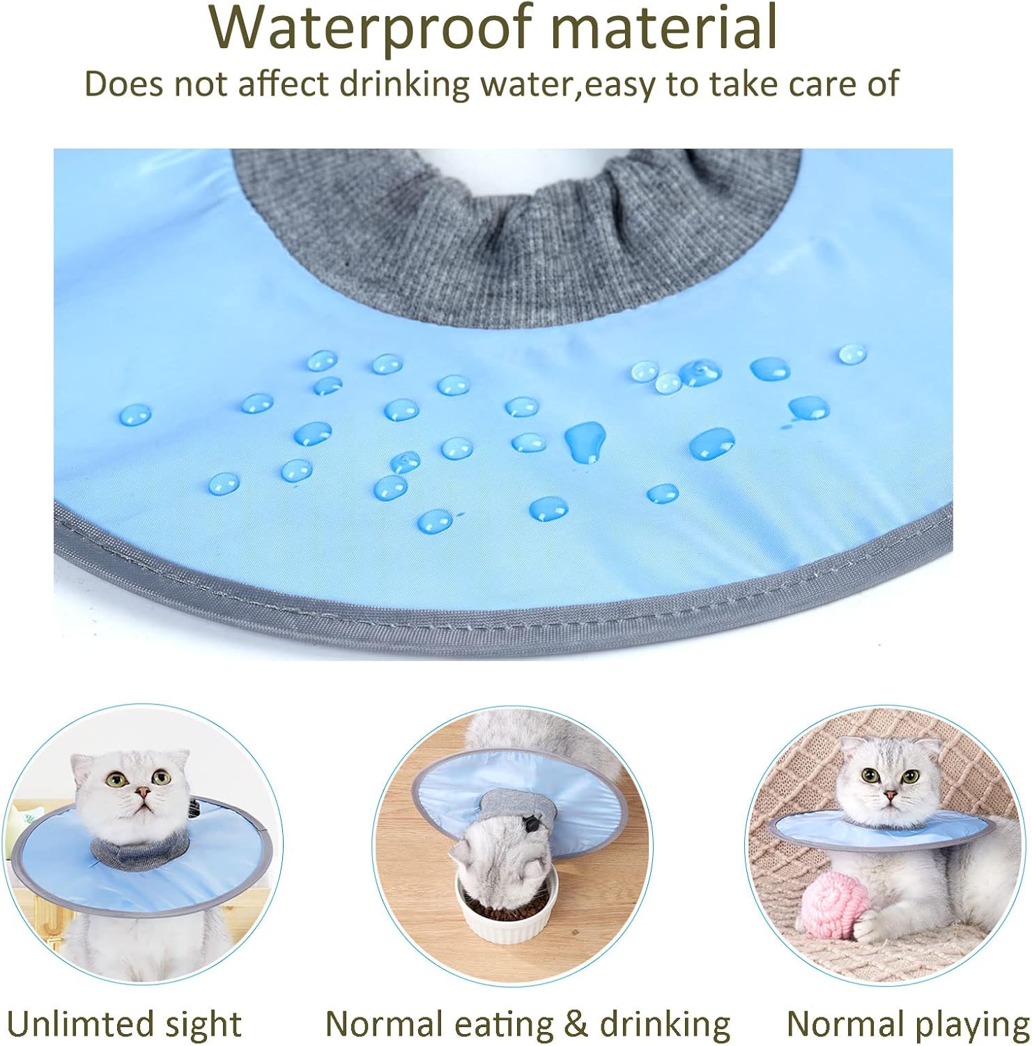 Waterproof Design: Cat cone collar is made of water-resistant polyester, easy to wipe clean with mild soap or warm water, don't worry about getting wet while drinking and it can keep pet's wounds in a dry environment, which is good for wound recovery