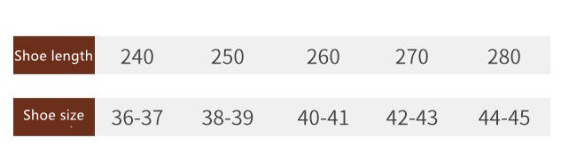 Size: 35-36 for 34-35,37-38 for 36-37,39-40 for 38-39,40-41 for 39-40,42-43 for 41-42,44-45 for 43-44