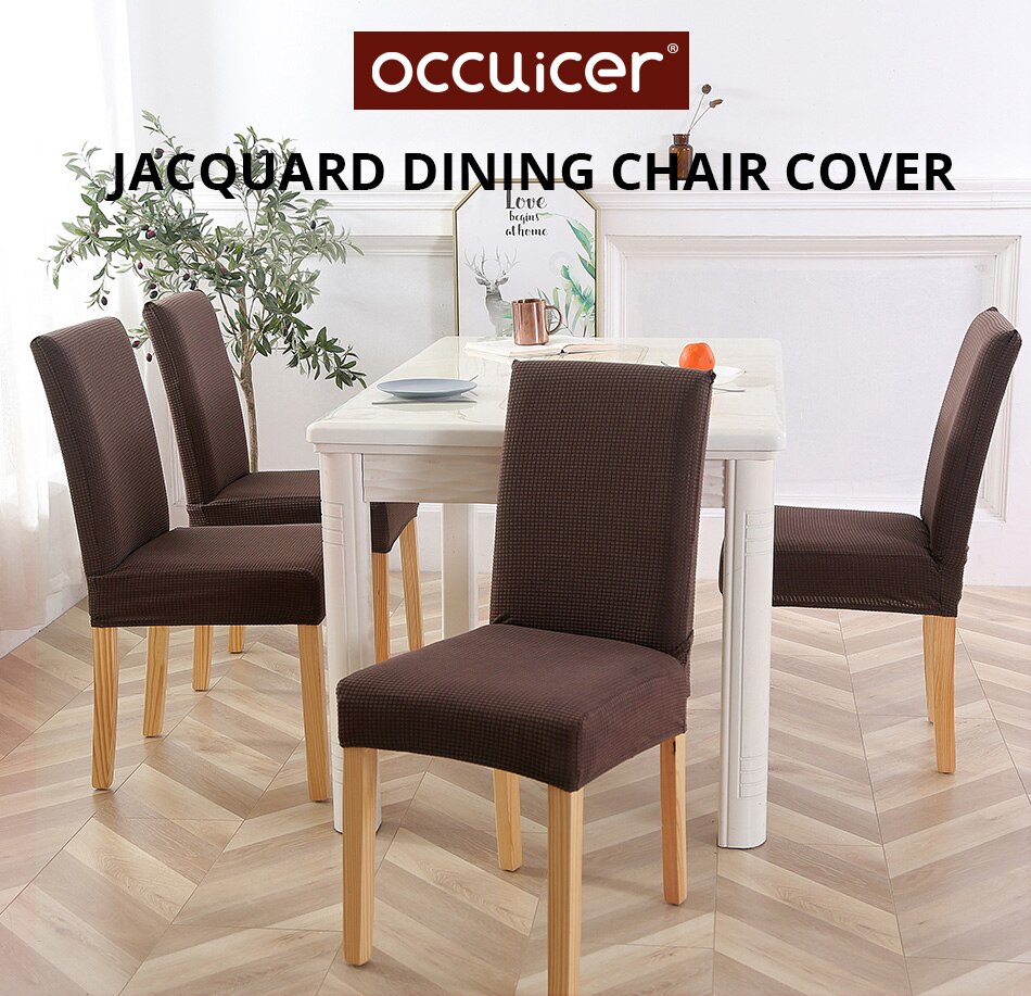 Protect and refresh your old dining chair with this beautiful jacquard dining chair cover. The cover features a beautiful jacquard pattern that adds elegance to any space. You won't believe this is the cover, now wearing a short chair make-up!
