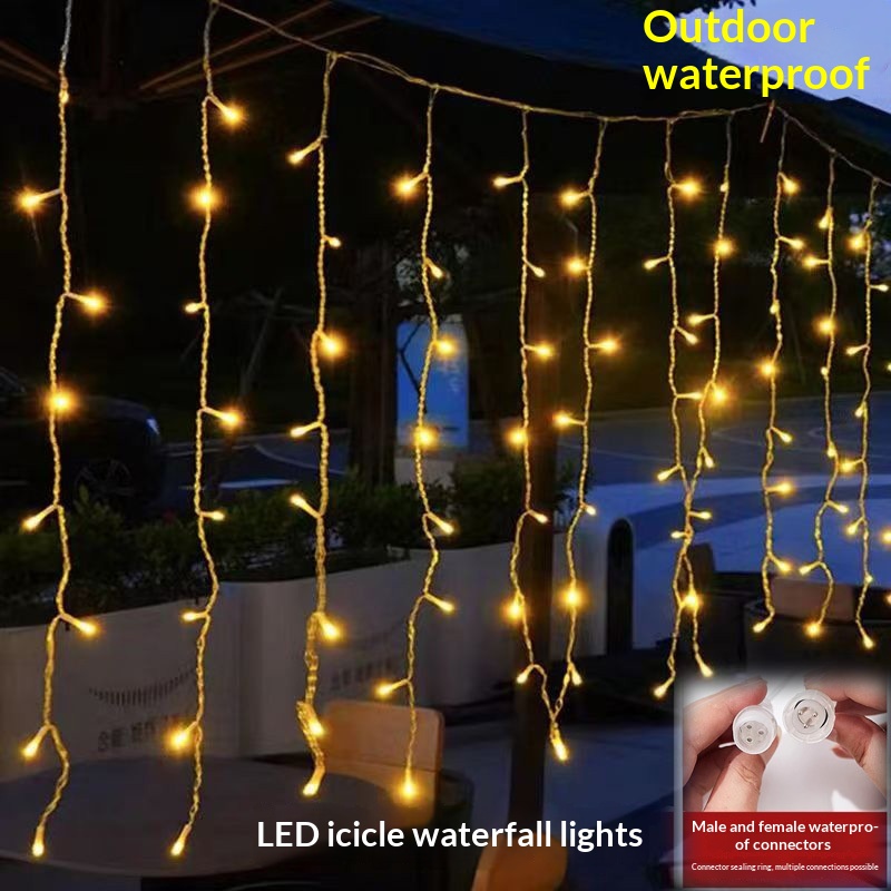 Waterproof Icicle Waterfall Lights With Starry Accents