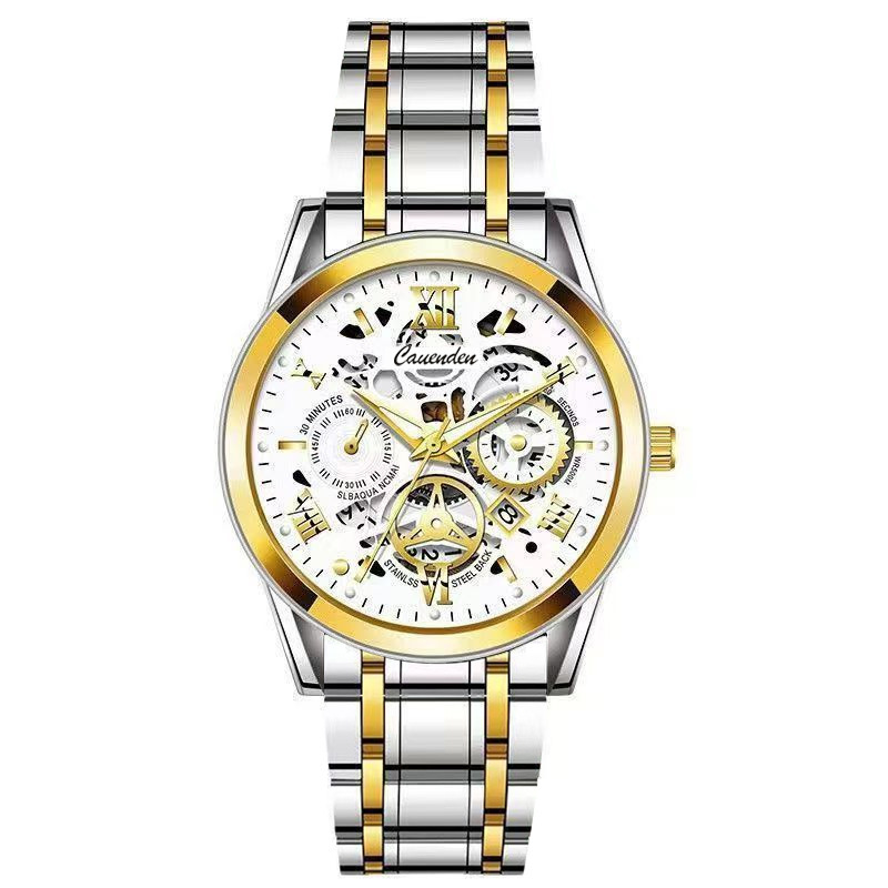 Color: Gold case with a gold dial, silver case with a black dial, black case with a black dial, bronze case with gold stripes, silver case with a white dial, white dial with gold stripes, black dial with gold stripes