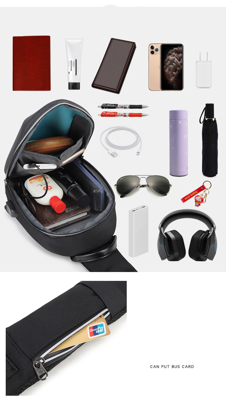 Capacity: iPad, mobile phone, wallet, notepad, power bank, drinking cup, folding umbrella, etc.