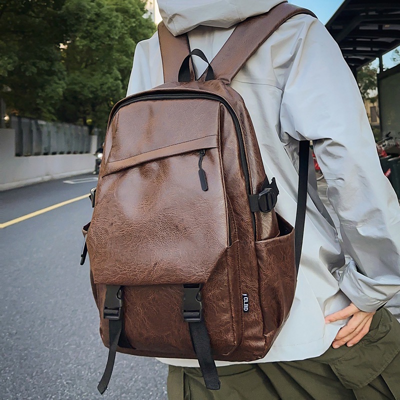 Waterproof PU Soft Leather Men's Business Backpack