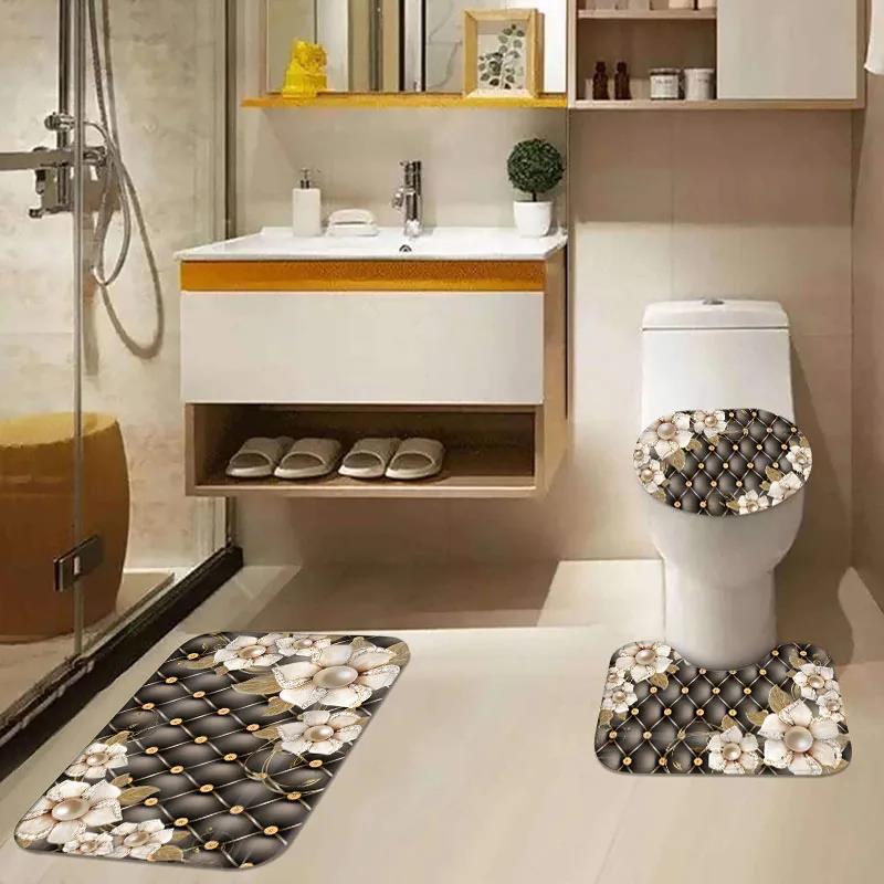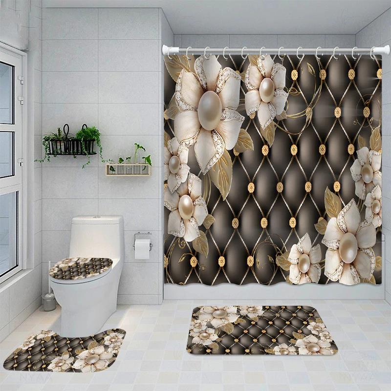 Size: 1 shower curtain, 4 pieces-full set, toilet mat three-piece set 45x75cm