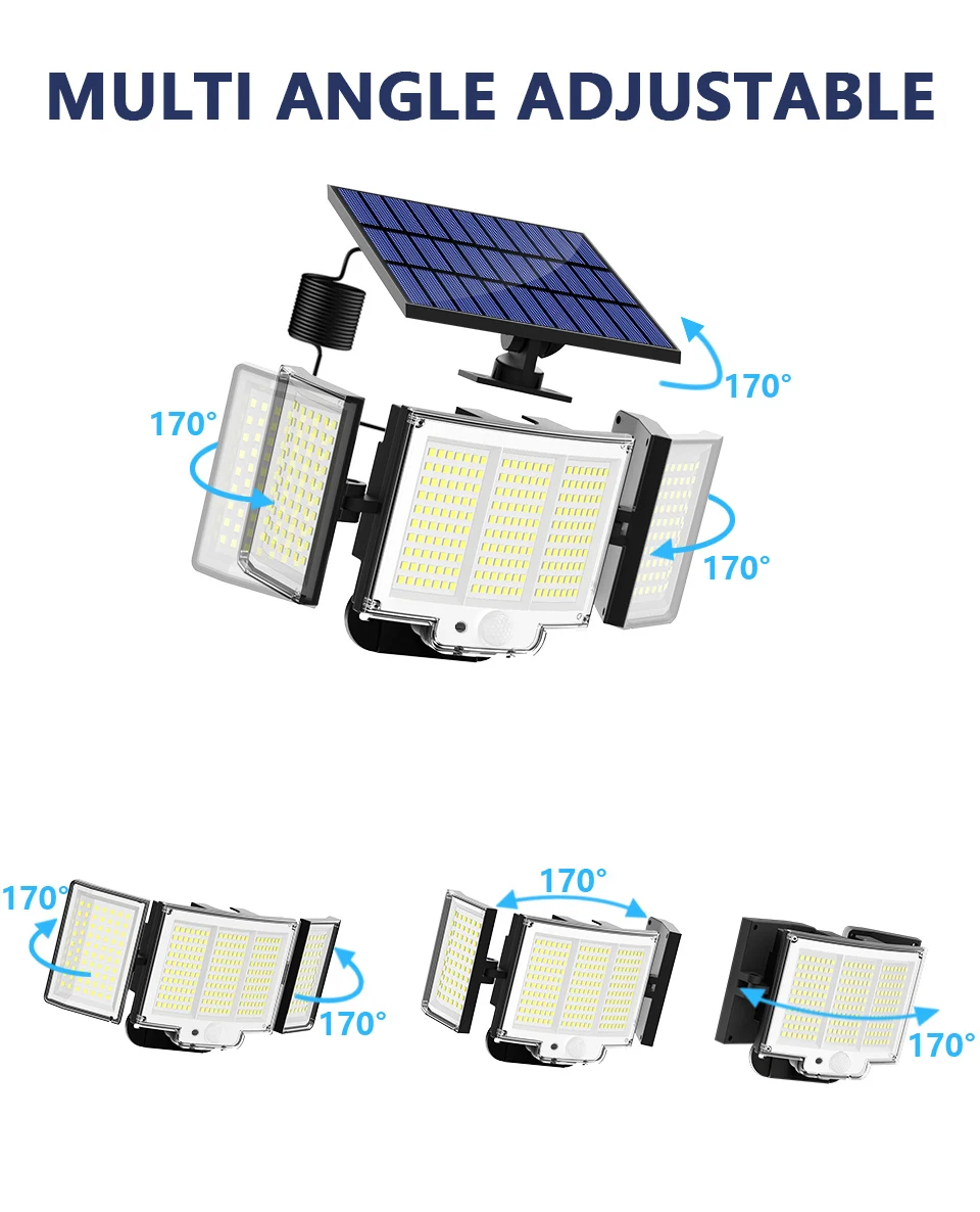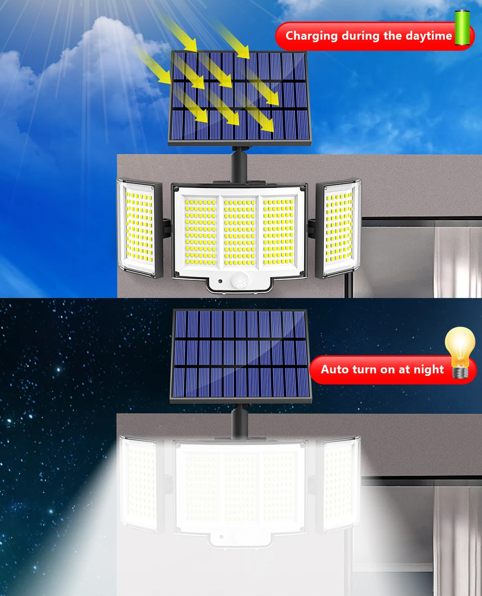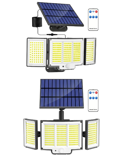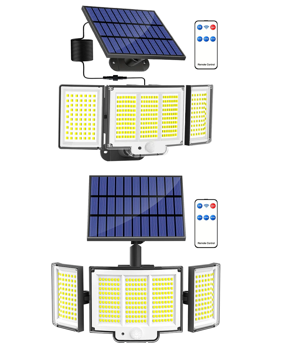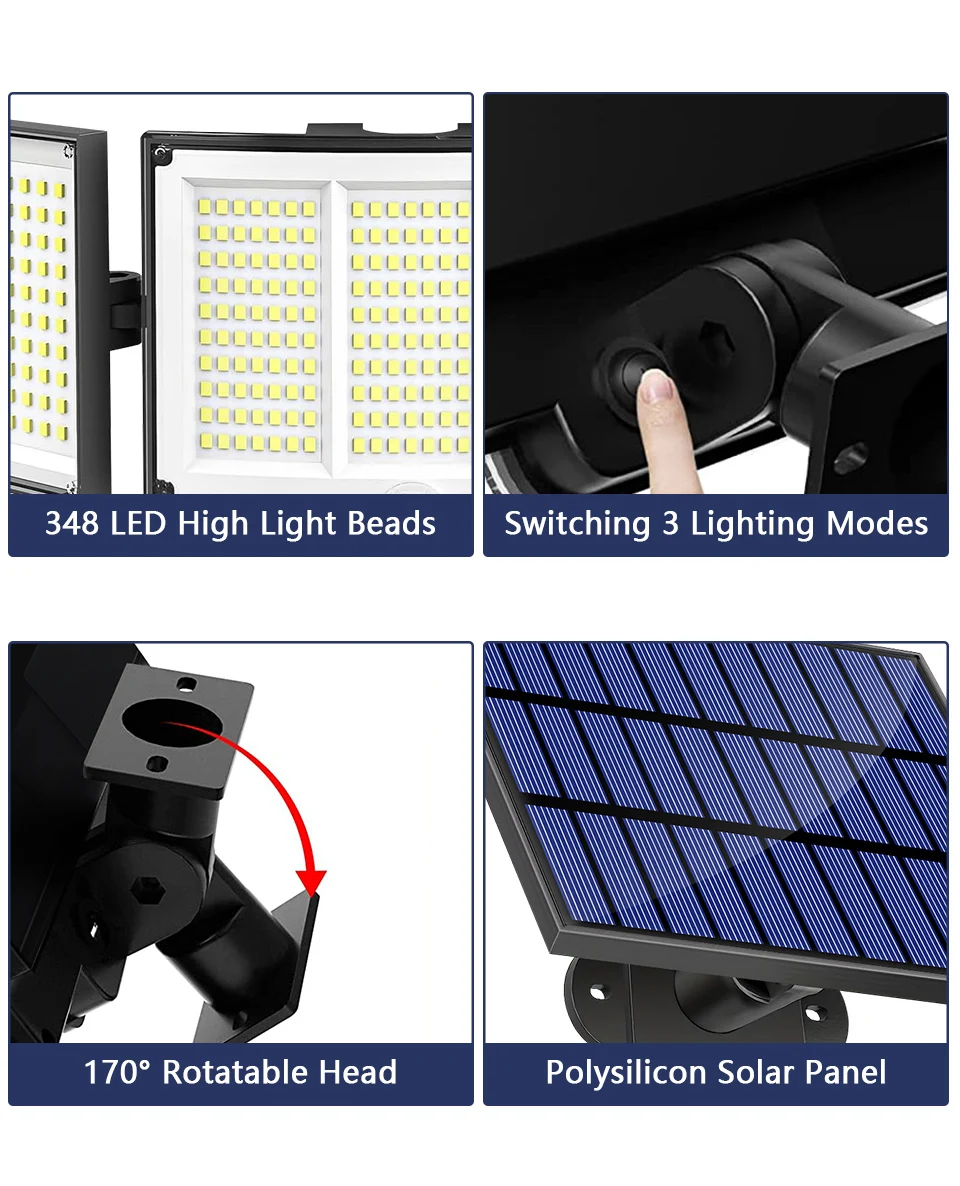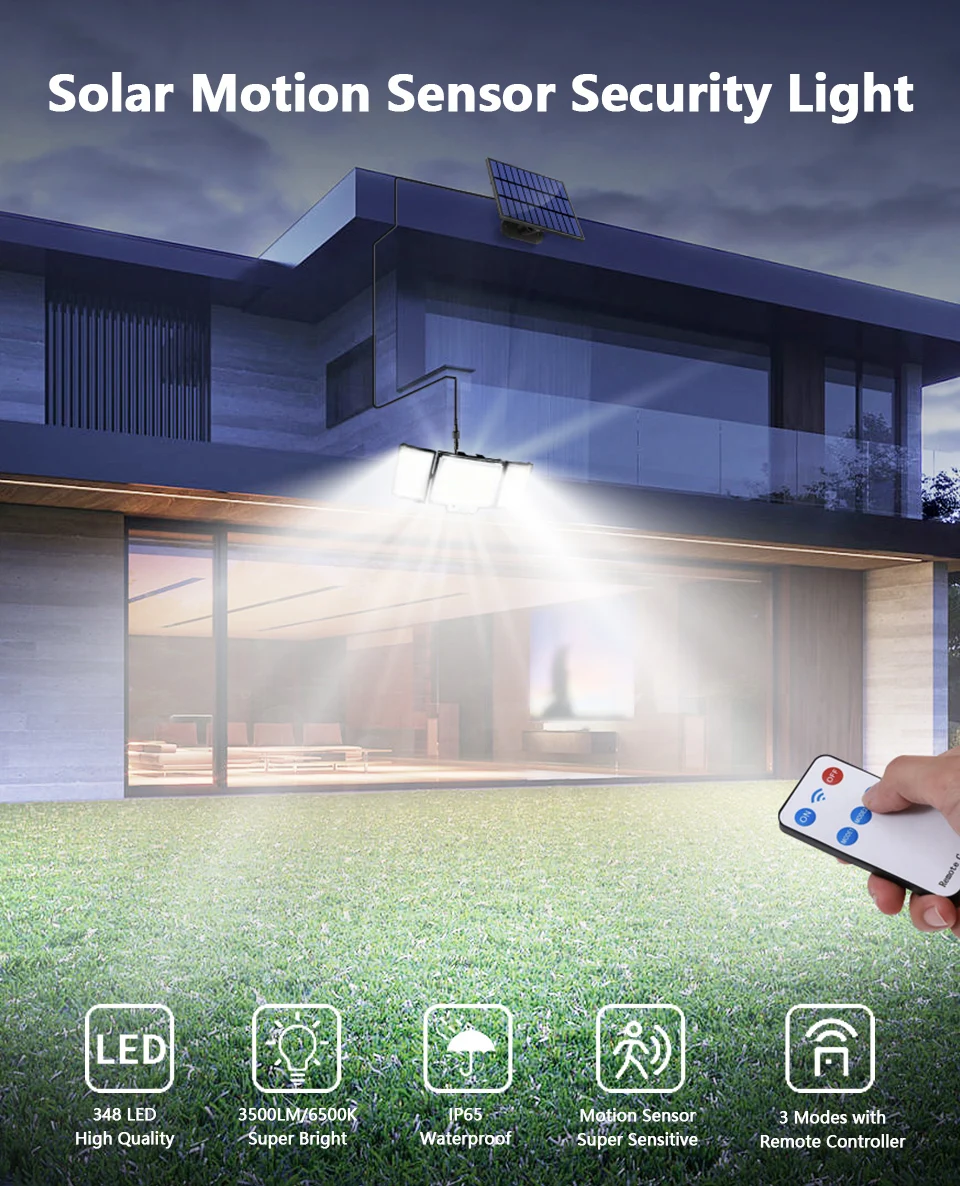 Solar Lights Outdoor, 348 LED Motion Sensor Lights With Remote Control, 3 Head Waterproof