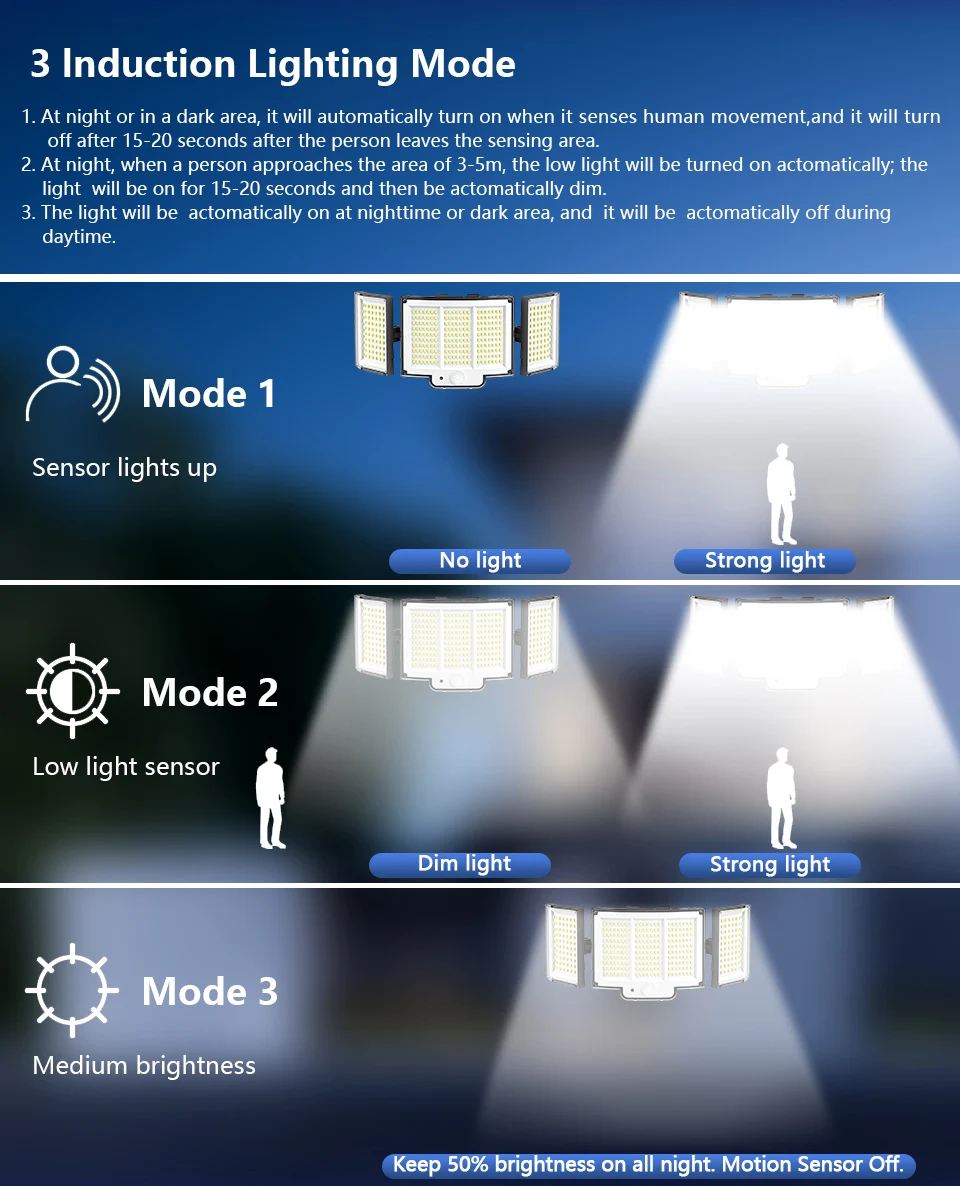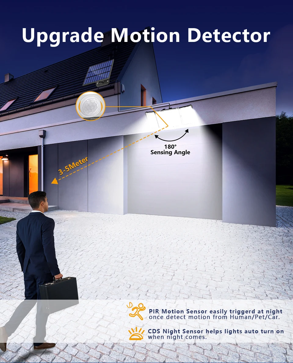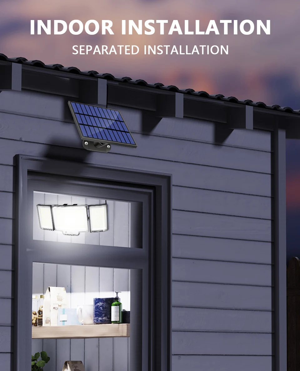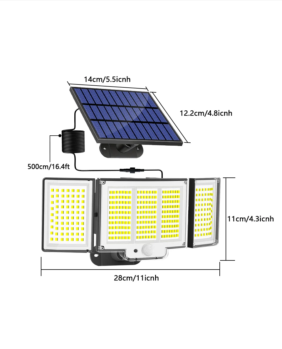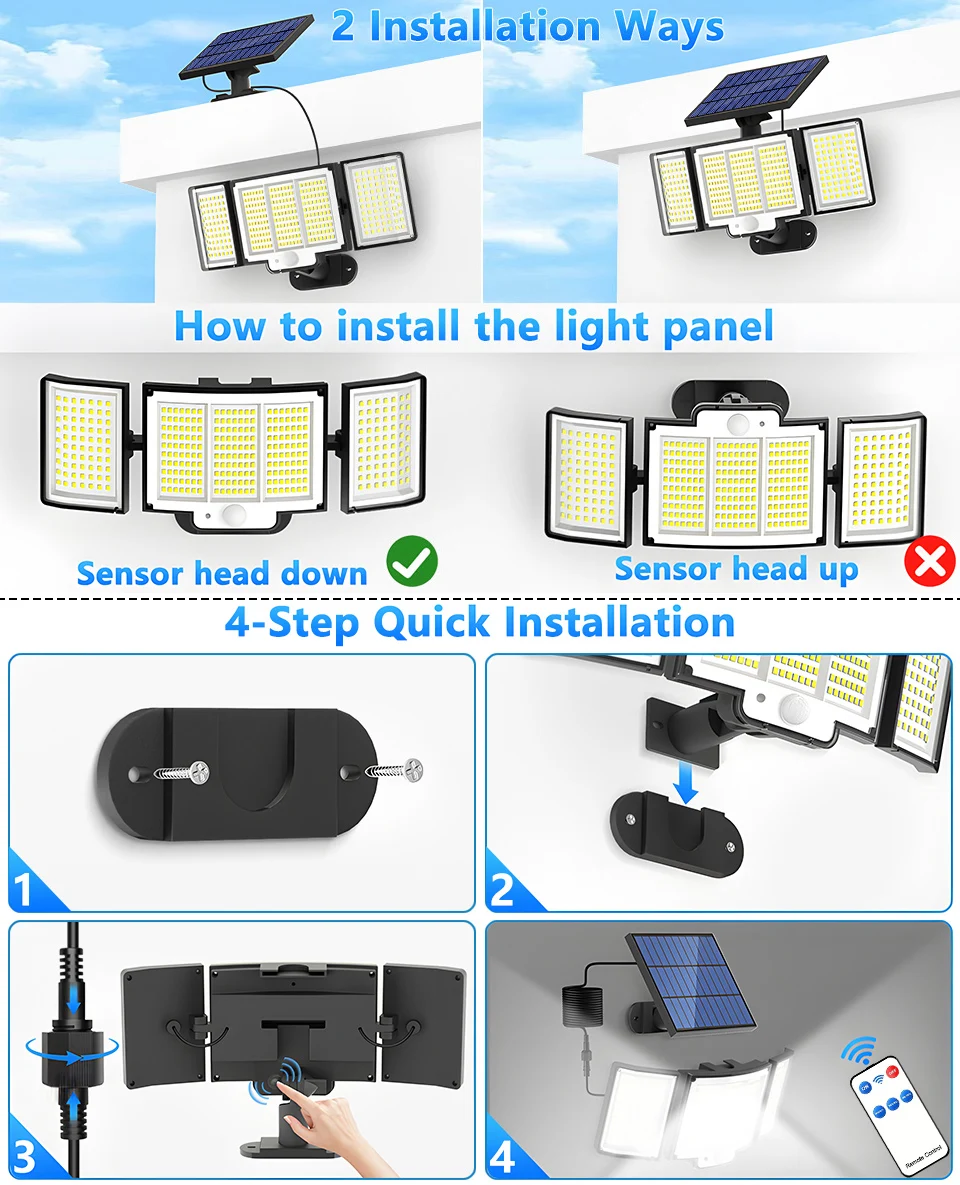 Solar Lights Outdoor, 348 LED Motion Sensor Lights With Remote Control, 3 Head Waterproof
