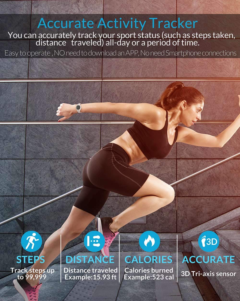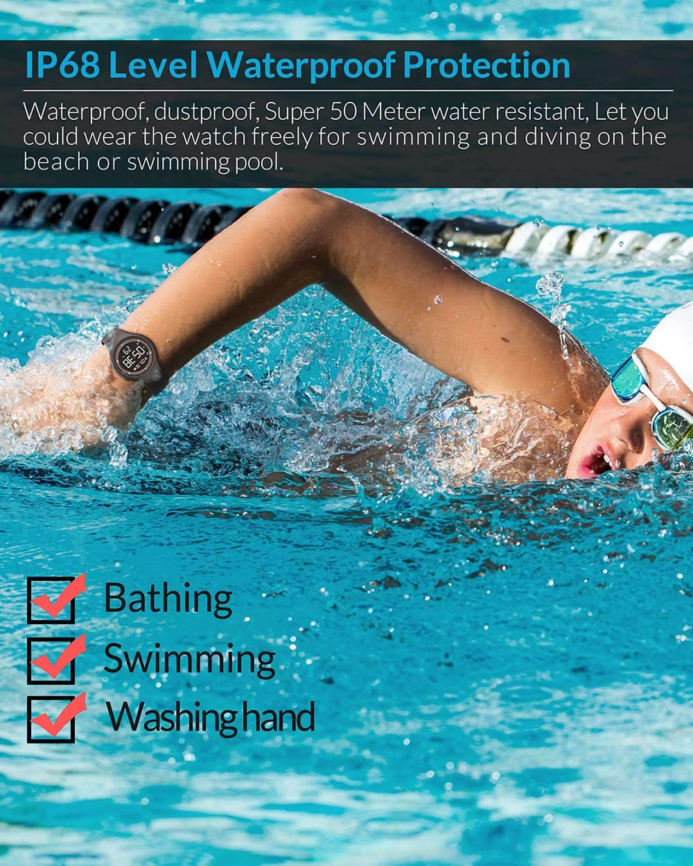 Sports Fitness Tracker Watch,IP68 Waterproof, Non-Bluetooth, with Pedometer/Vibration Alarm Clock/Timer,for Kid Children Teen Boys Girls Women