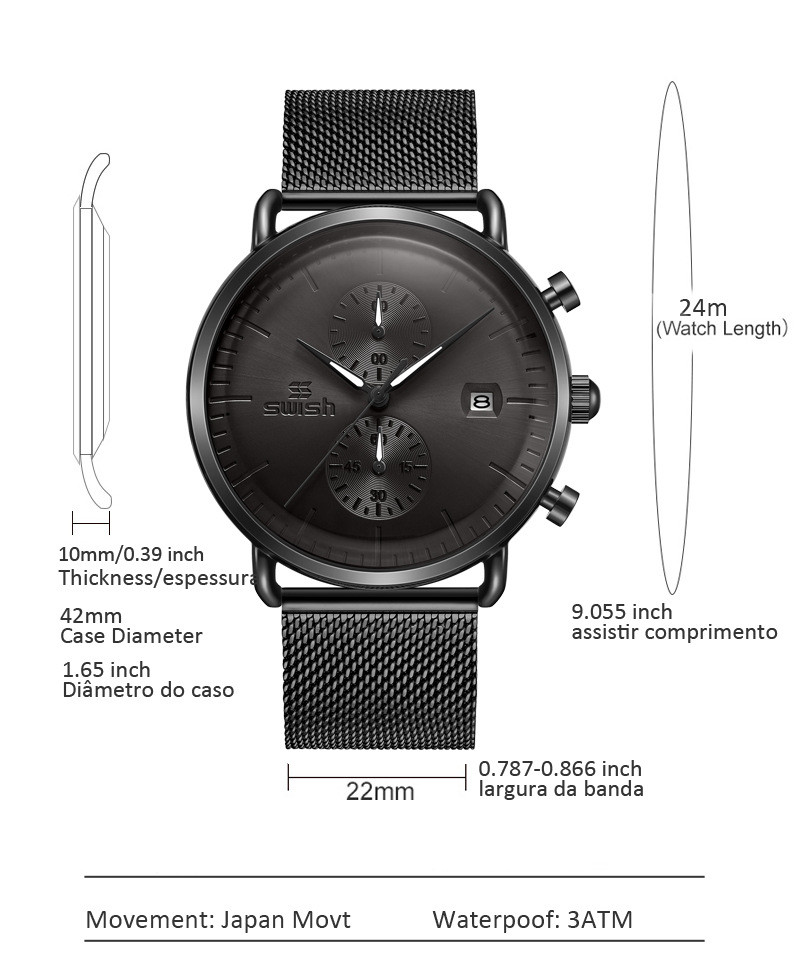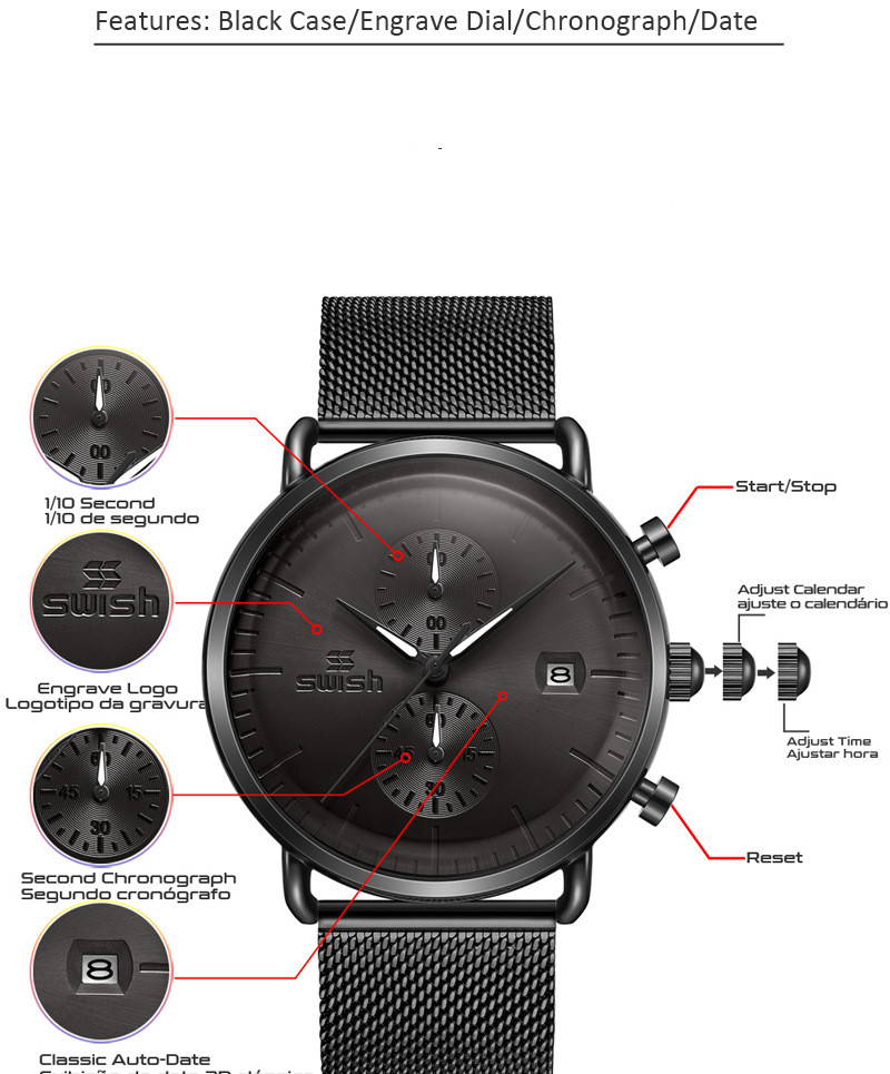 Special functions: decoration, luminous, chronograph, calendar, small three hands