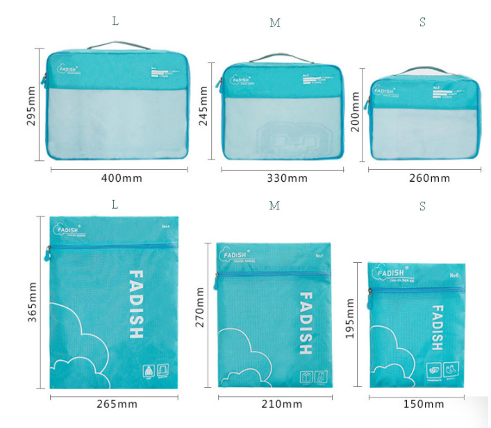 Packing list:3 clothing bags + 3 sundries bags + shoe bags