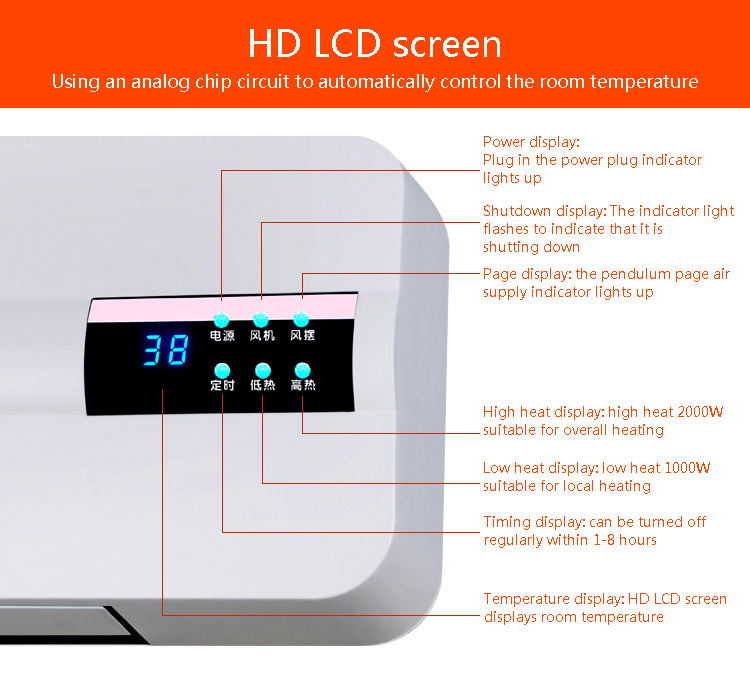 2.Automatic constant temperature: high-definition LCD display, display indoor temperature anytime and anywhere, constant temperature can be set within the range of 18-45 degrees