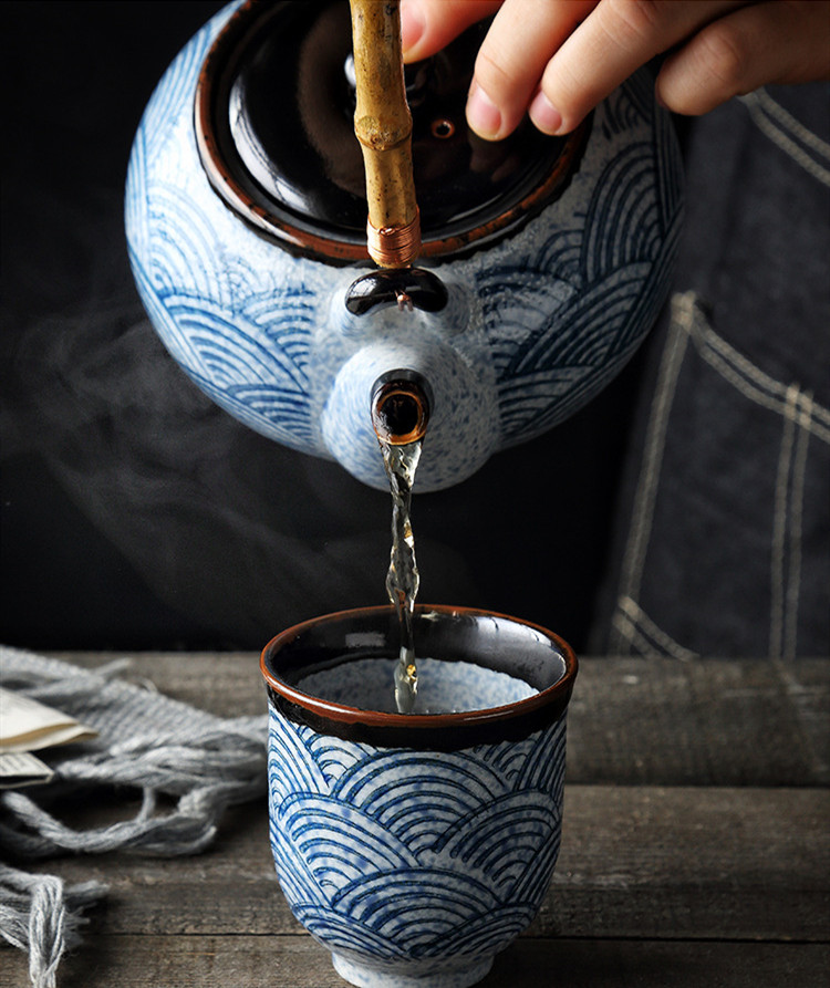 Wave ceramic hand-painted teapot