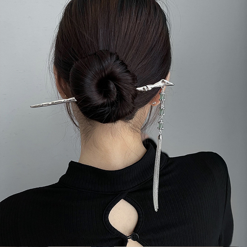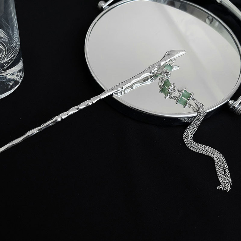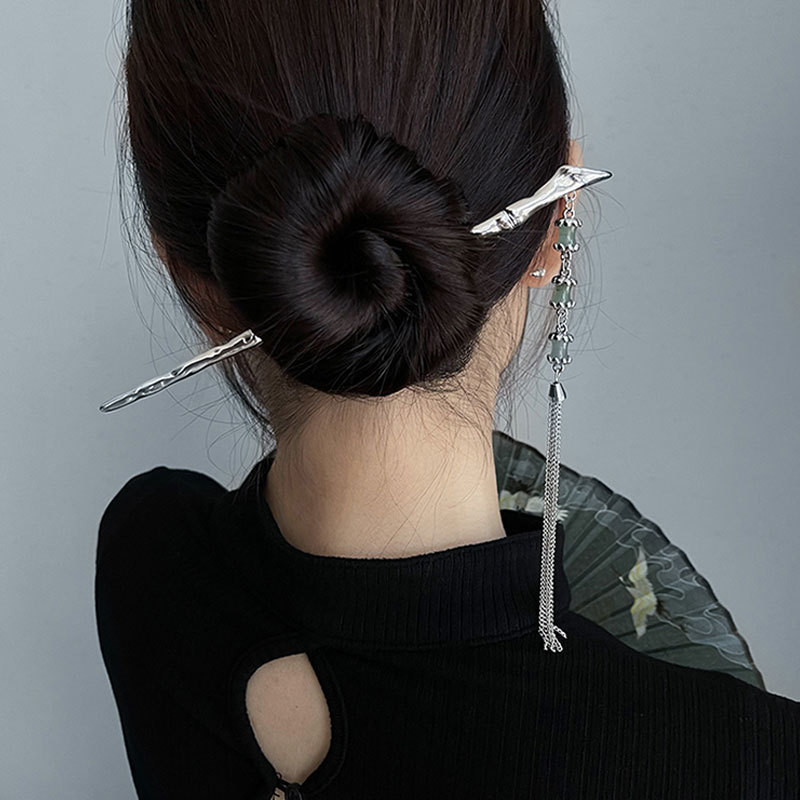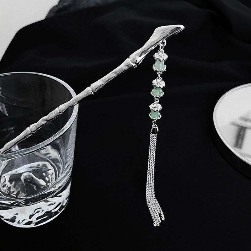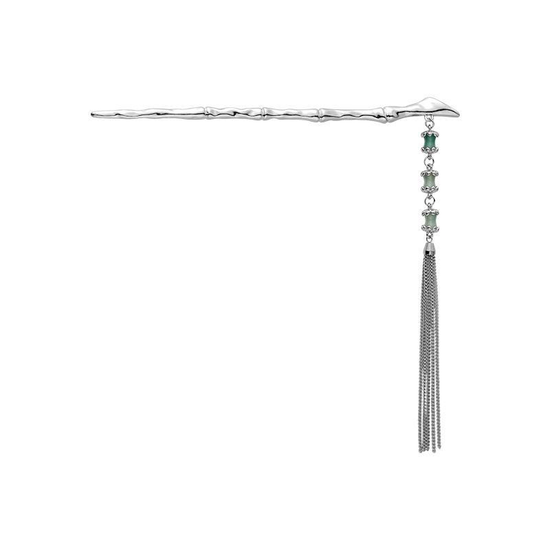 Color: AA0515 silver bamboo fringed hairpin