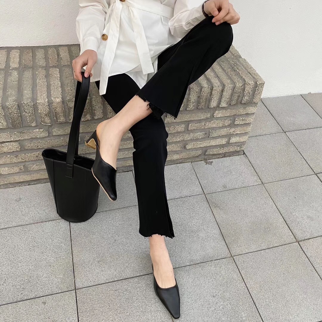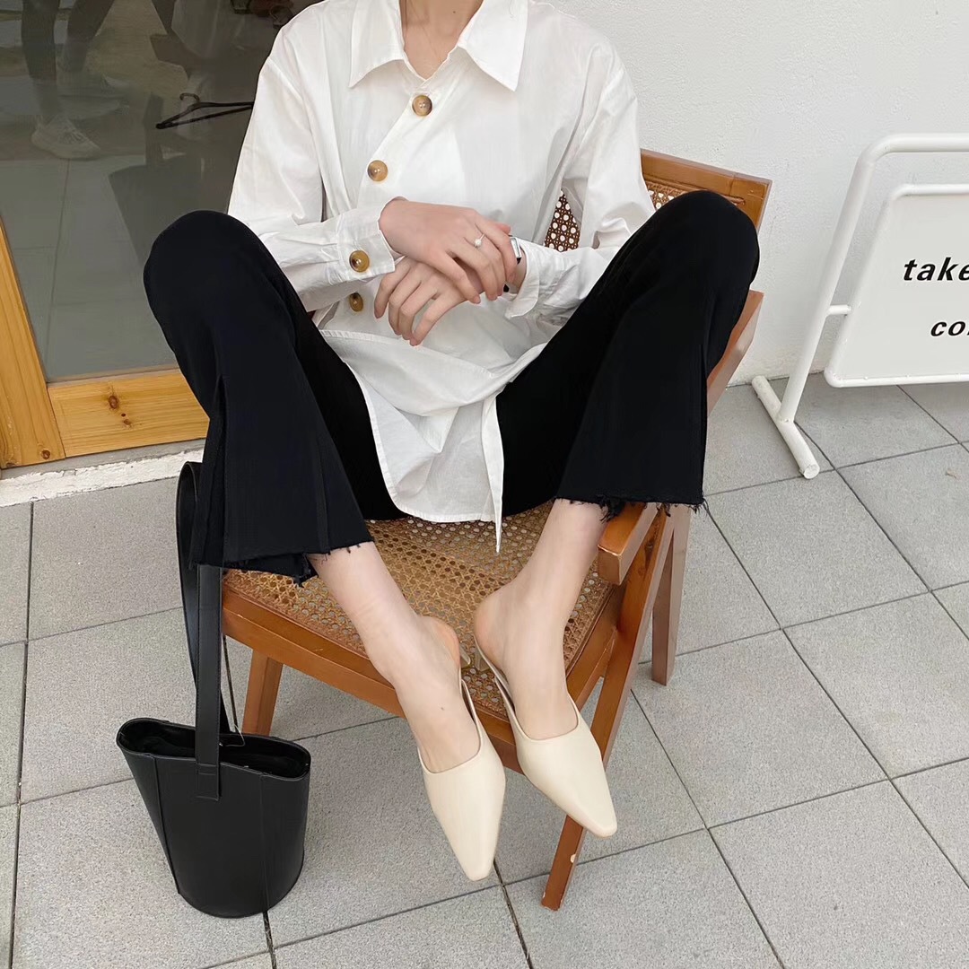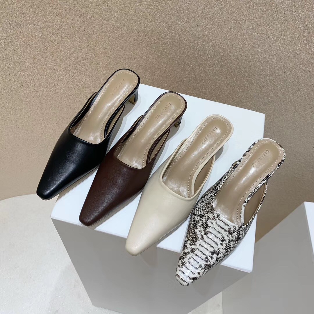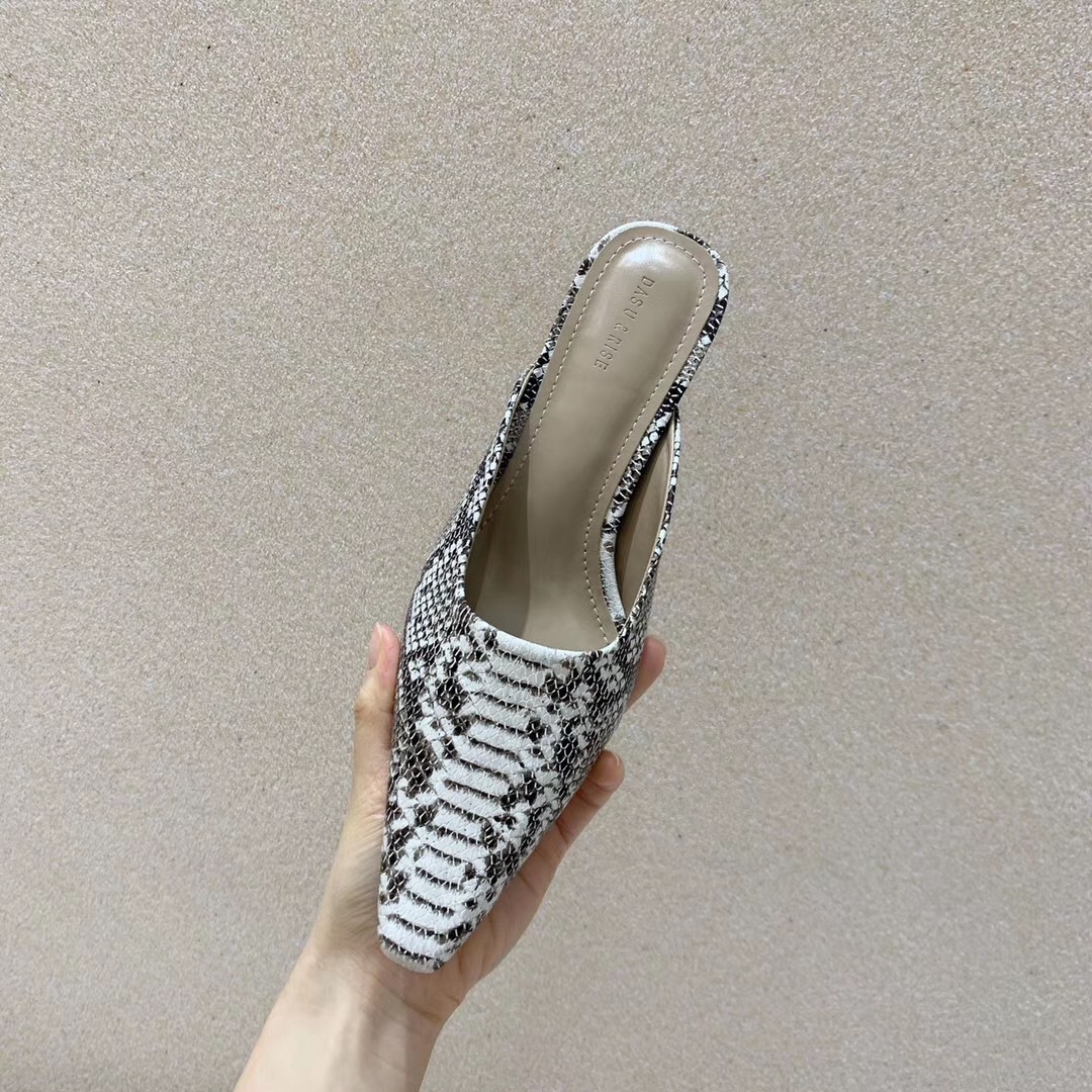 Wear Half Slippers With Snakeskin Thick Heel And Baotou