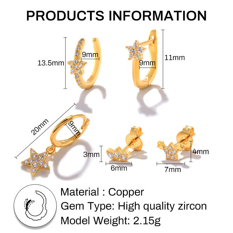 Color: Golden-5-piece set 2, golden-3-piece set, golden-4-piece set 3