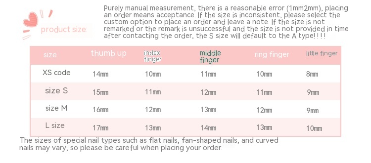 Nail pads * 10pcs+glue * 1+alcohol cotton pads * 1+jelly glue * 1+nail file * 1+wooden stick * 1